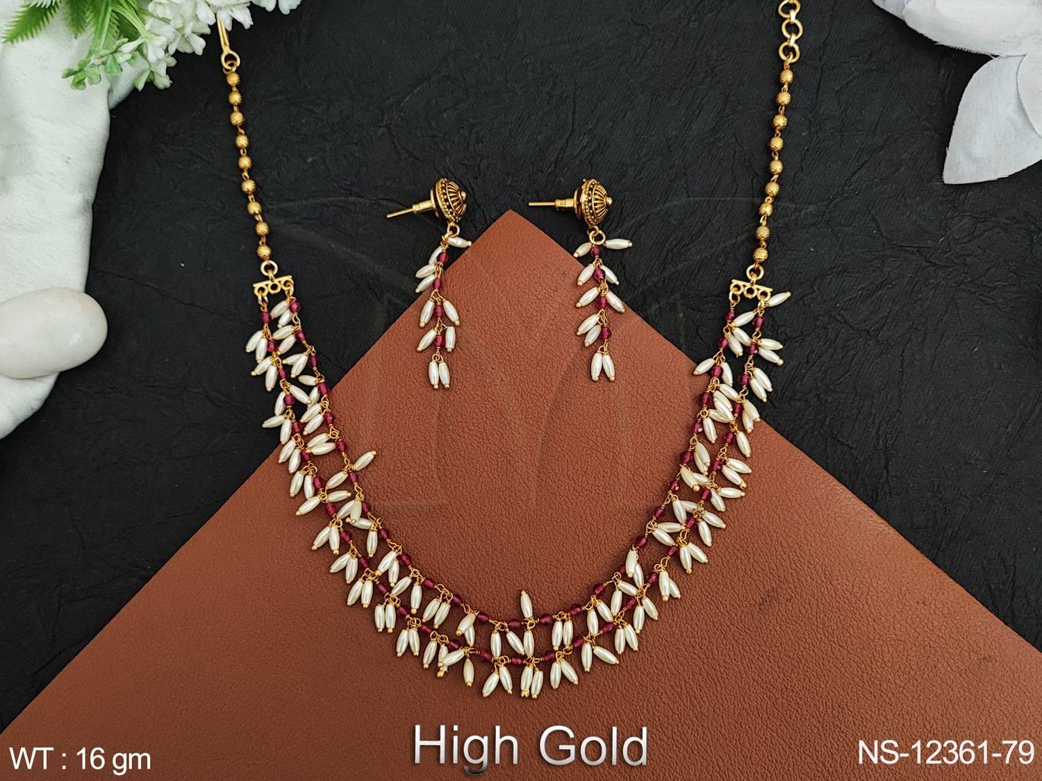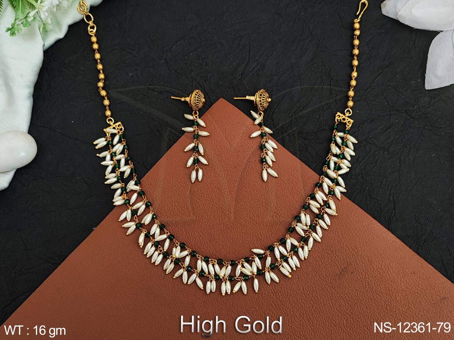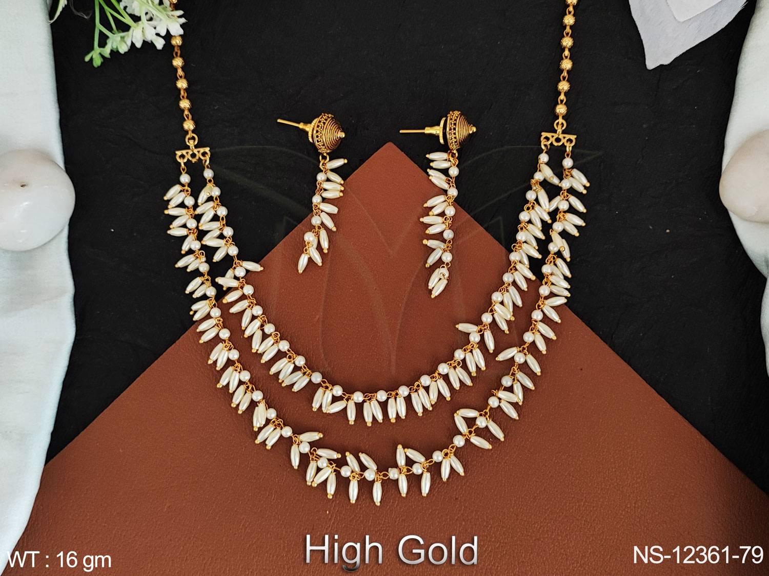 - 2 Layer High Gold Polish Fancy Design Party wear Antique Design Antique Jewellery Necklace Set