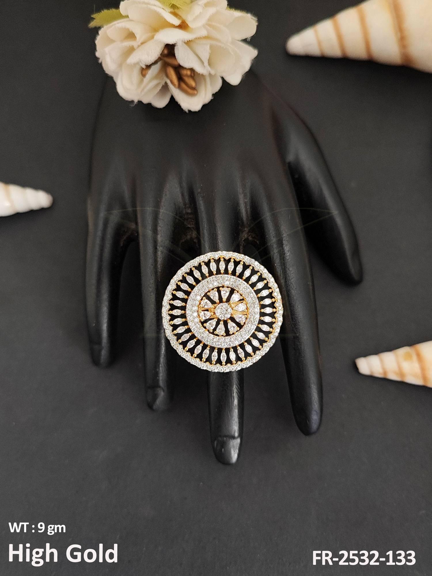 - American Diamond Jewellery Stylish High Gold Polish Fancy Finger Ring
