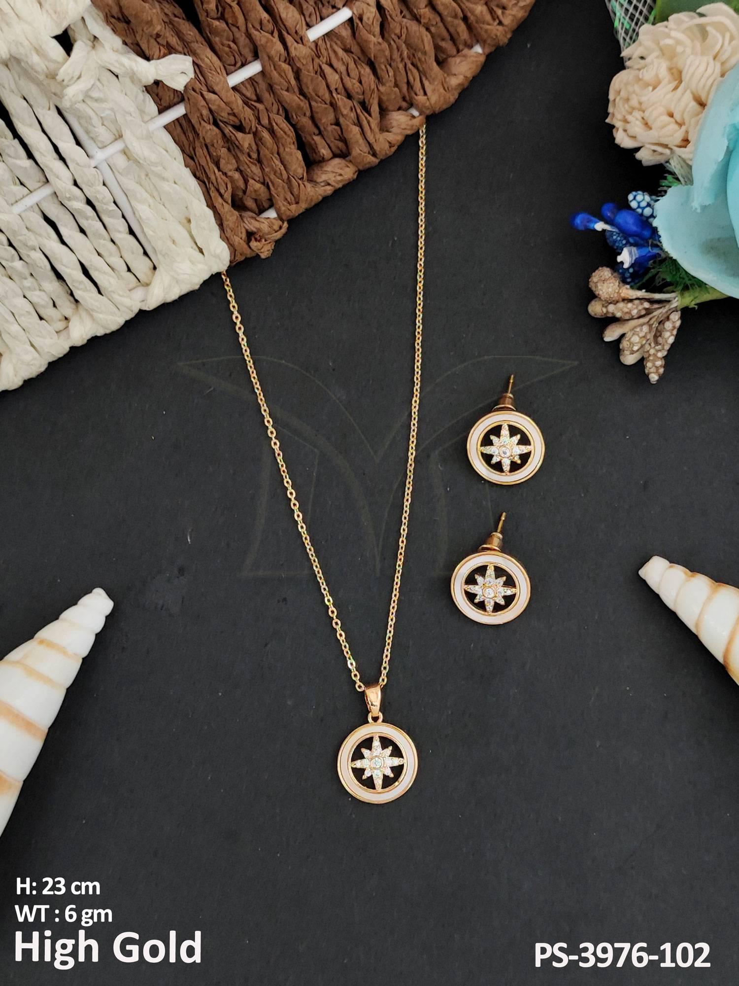 American Jewellery High Gold Polish Fancy Full Stone Designer Pendant Set