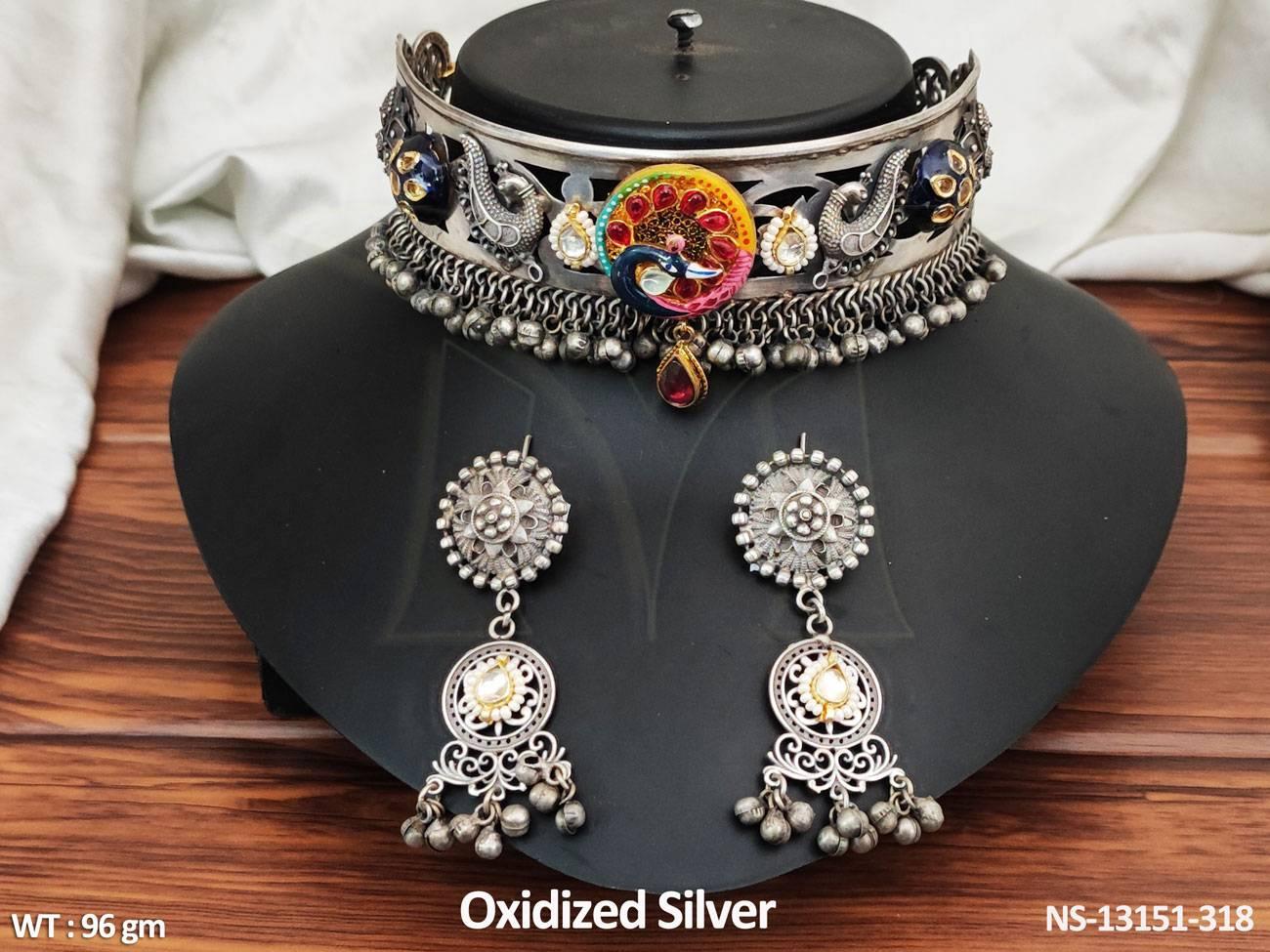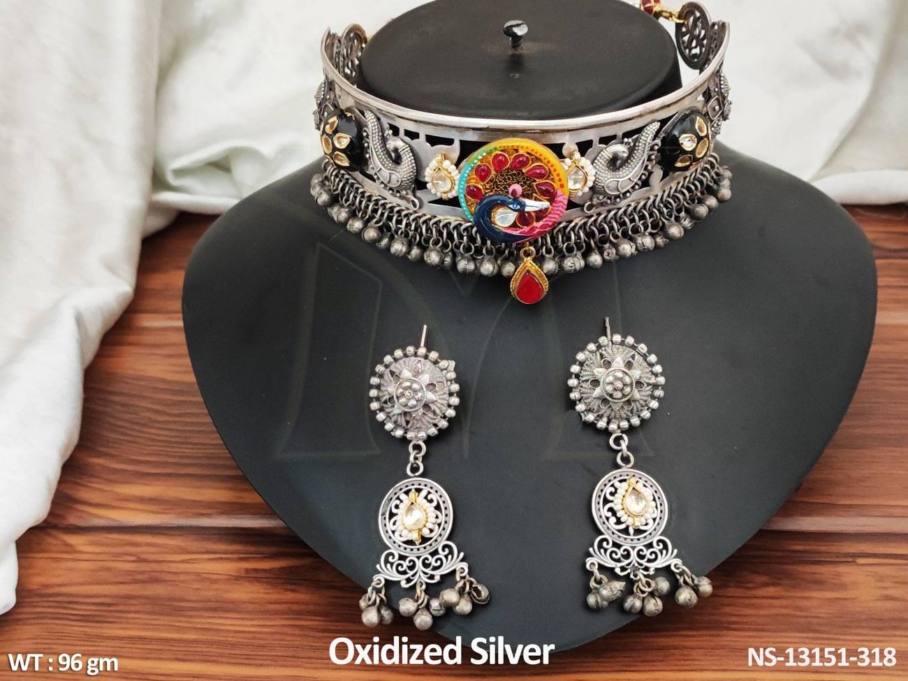 - Antique Design Oxidised Silver Polish Beautiful Party wear Oxidised Choker Necklace Set