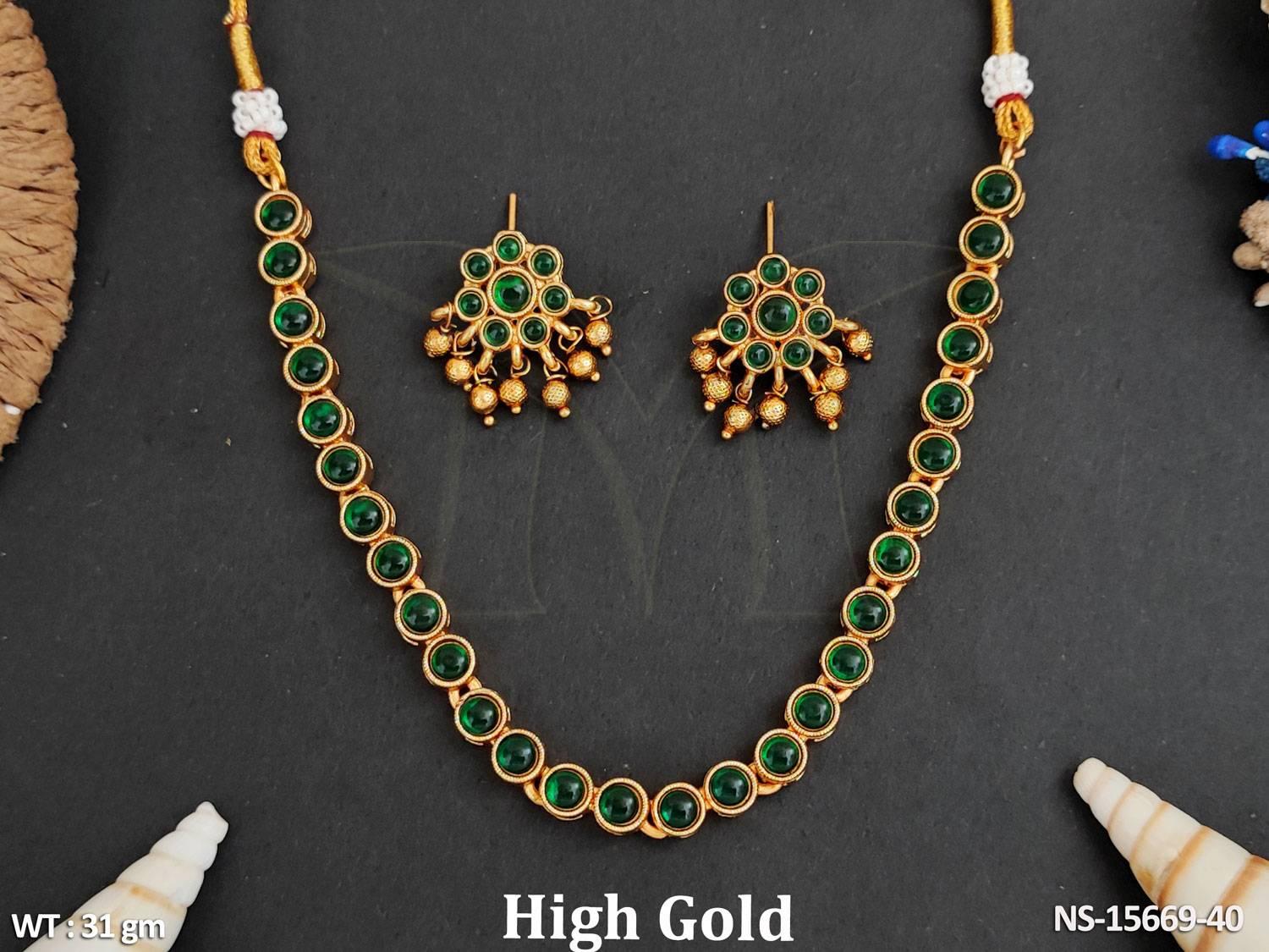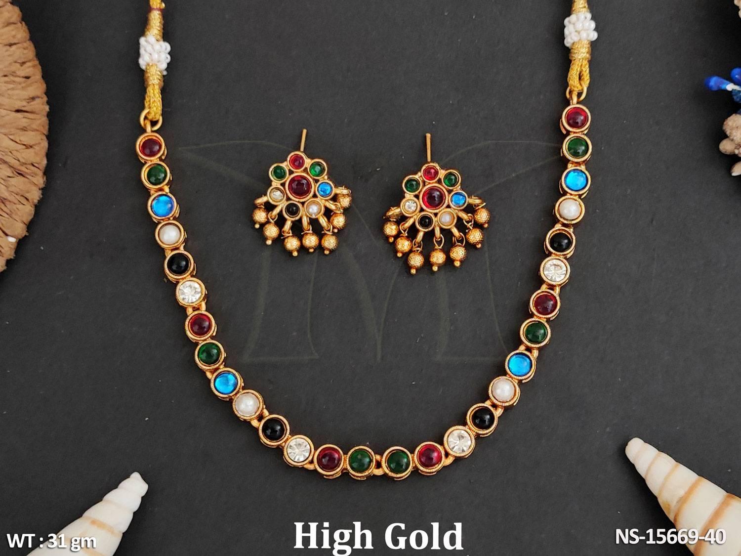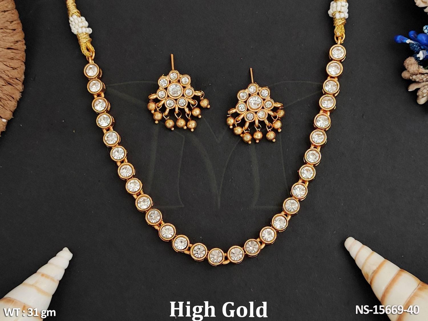 - Antique Jewellery Designer High Gold Polish Full Stone Party Wear Necklace Set