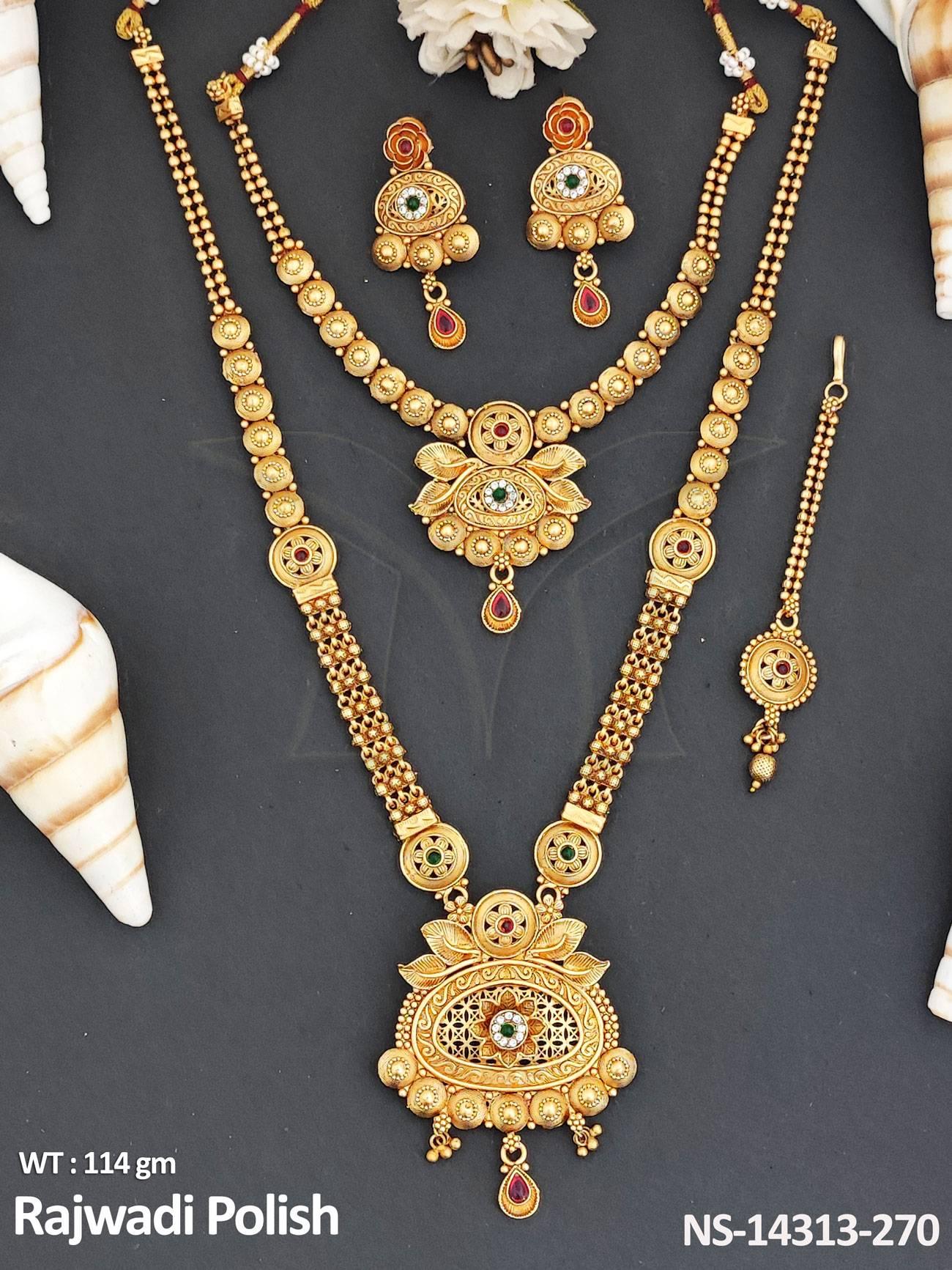2. Antique Jewellery Designer Rajwadi Polish Fancy Design Party Wear Necklace Set