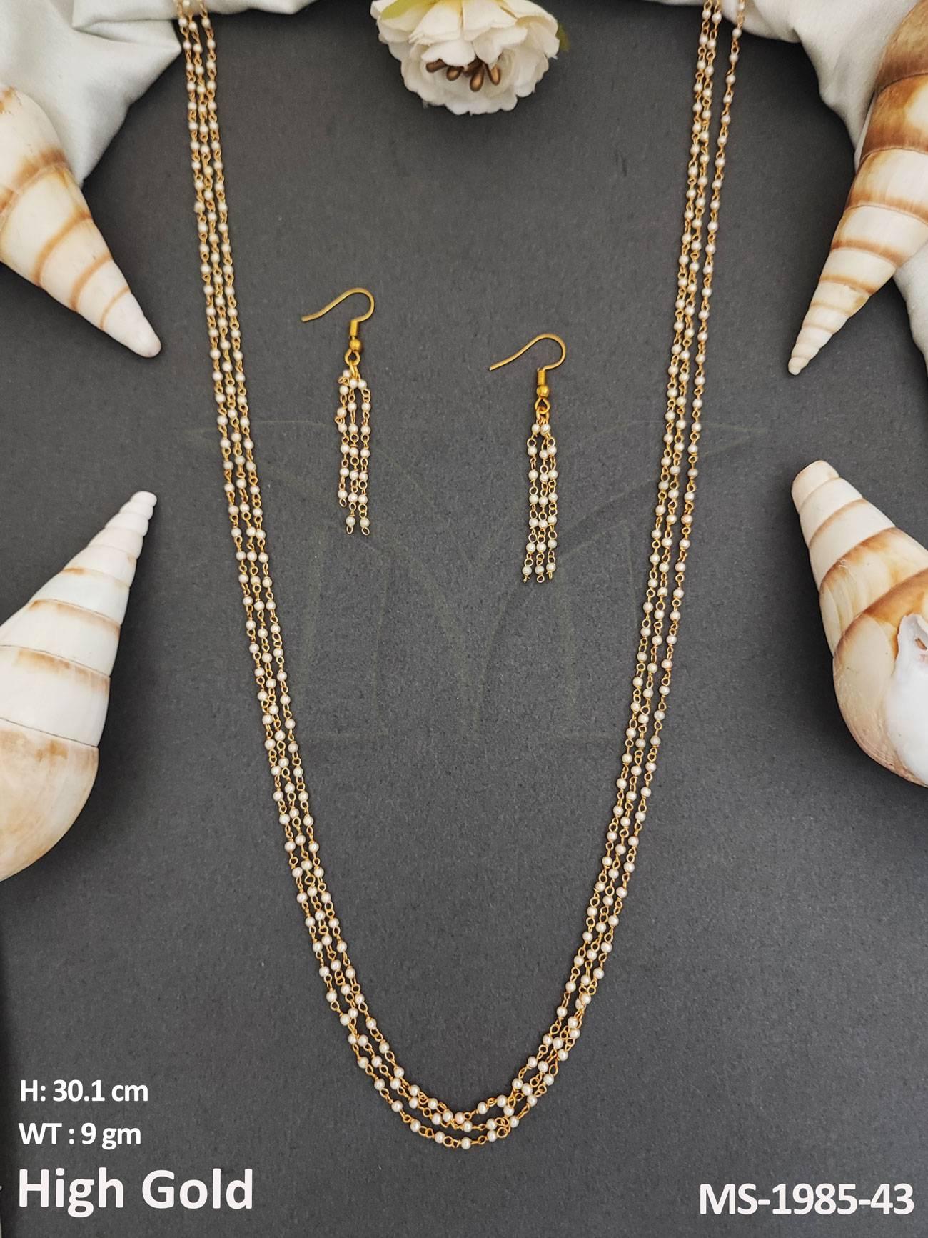 Antique Jewellery High Gold Polish Clustered Pearl Designer Antique Mala Set