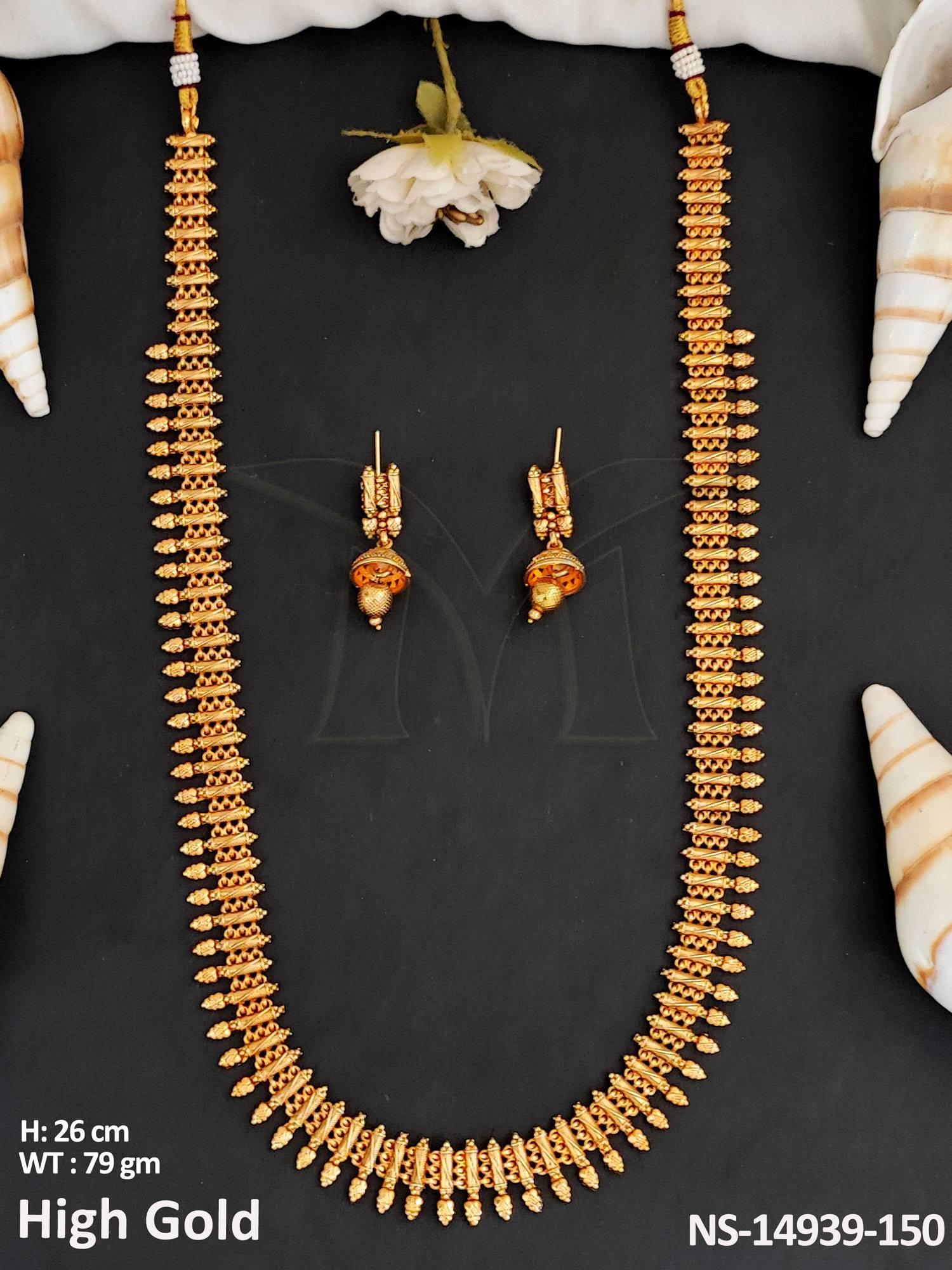 - Antique Jewellery Long Plain Gold Fashionable High Gold Polish Antique Neckalace Set