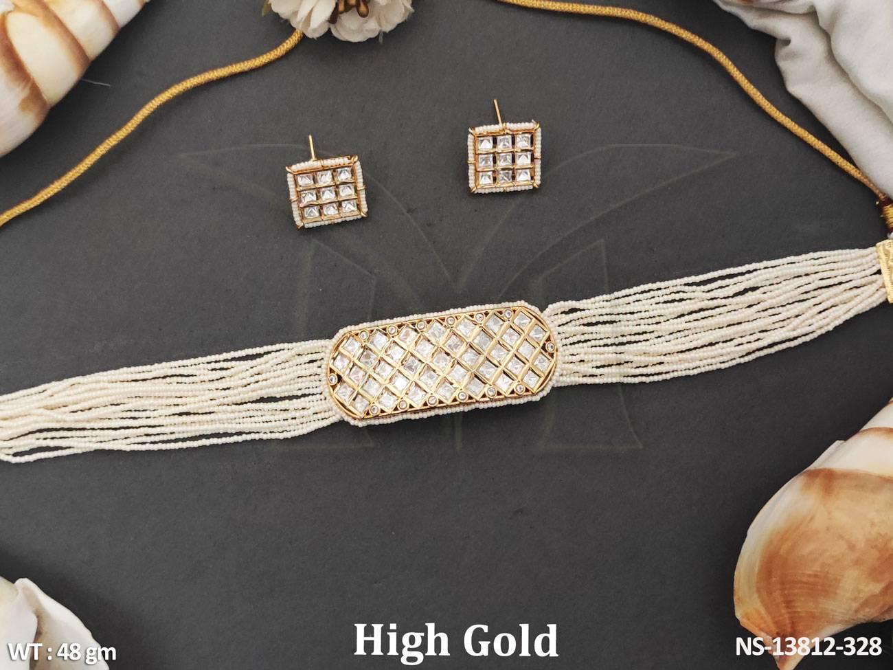 2. Beaded Style High Gold Polish Fancy Style Party wear Kundan Designer Kundan Choker Necklace Set