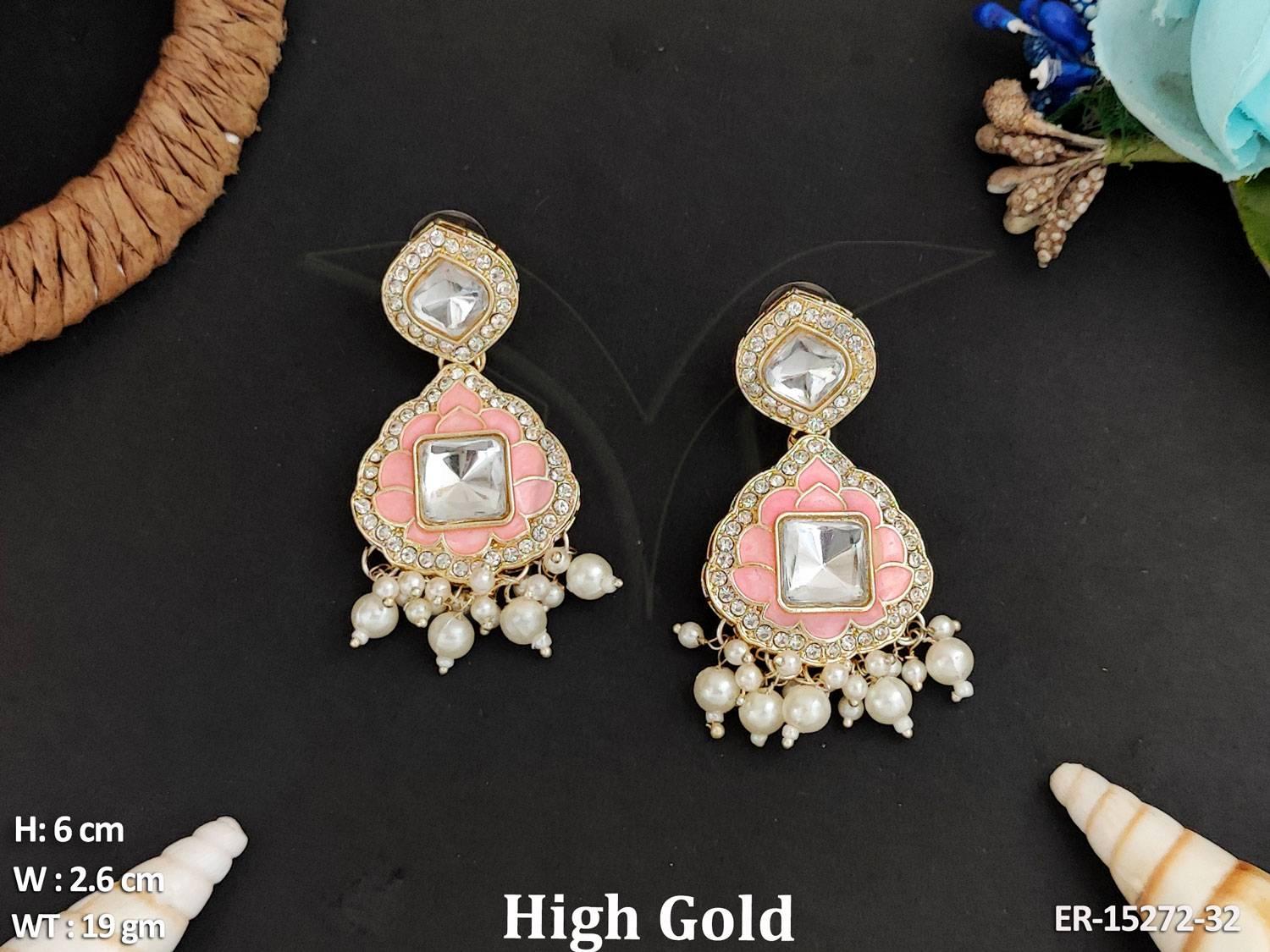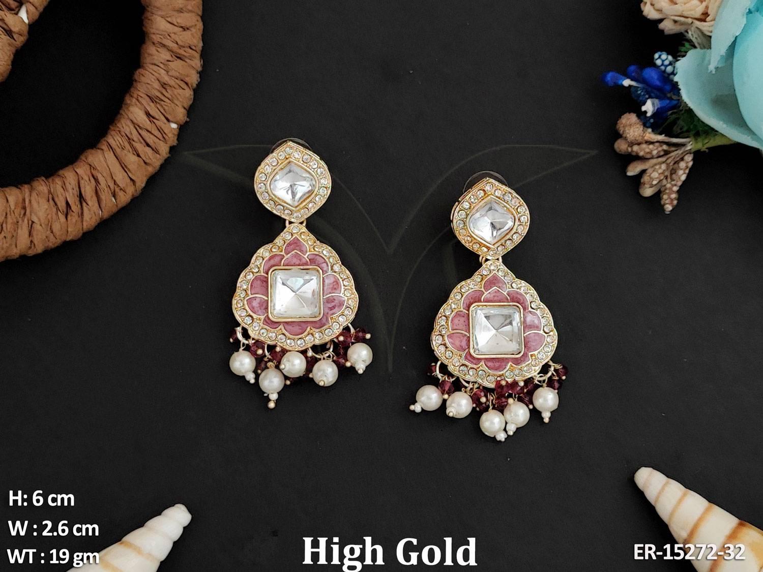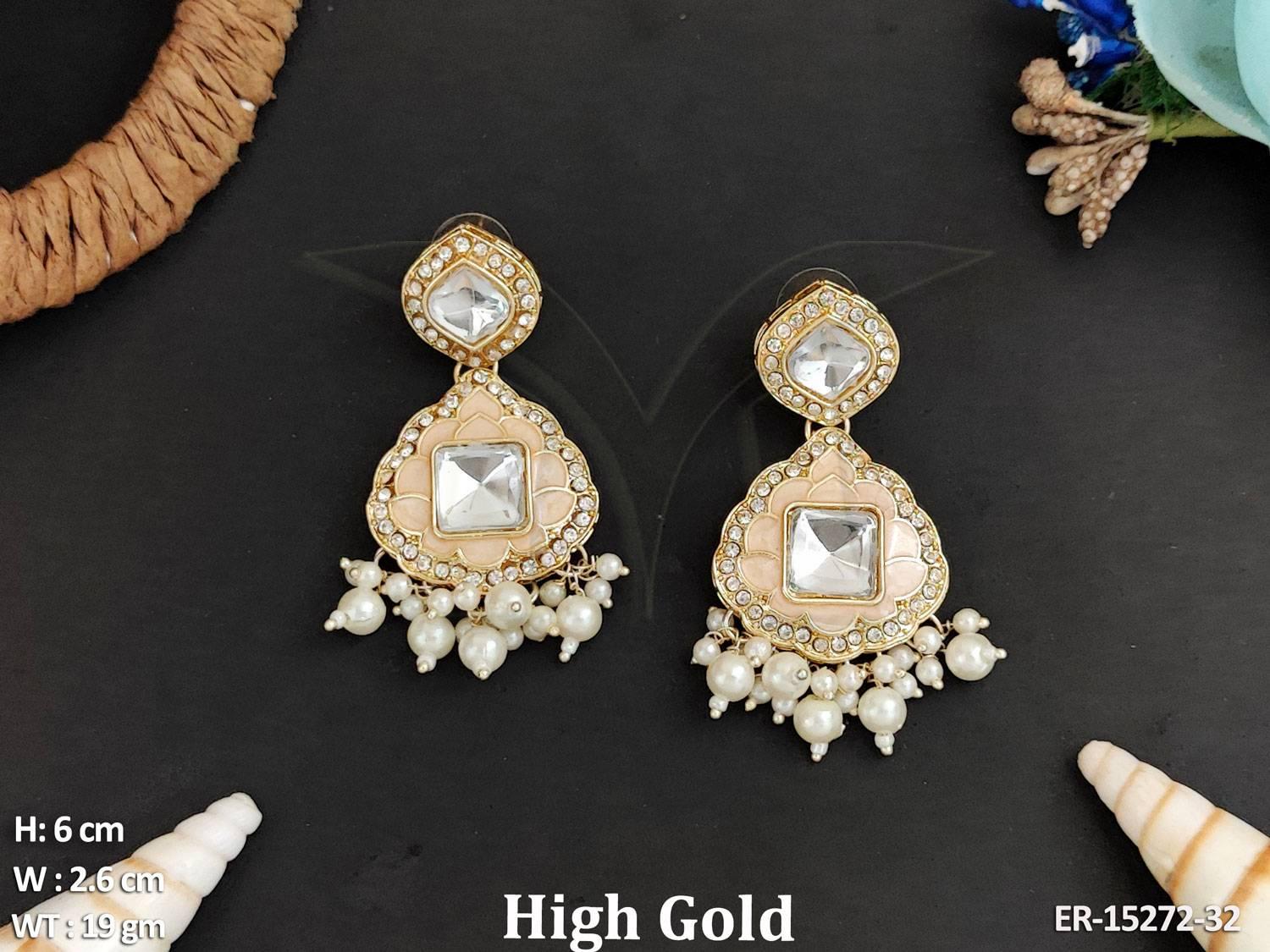 - Beautiful Designer High Gold Polish Clustered Pearl Fancy Style Earrings