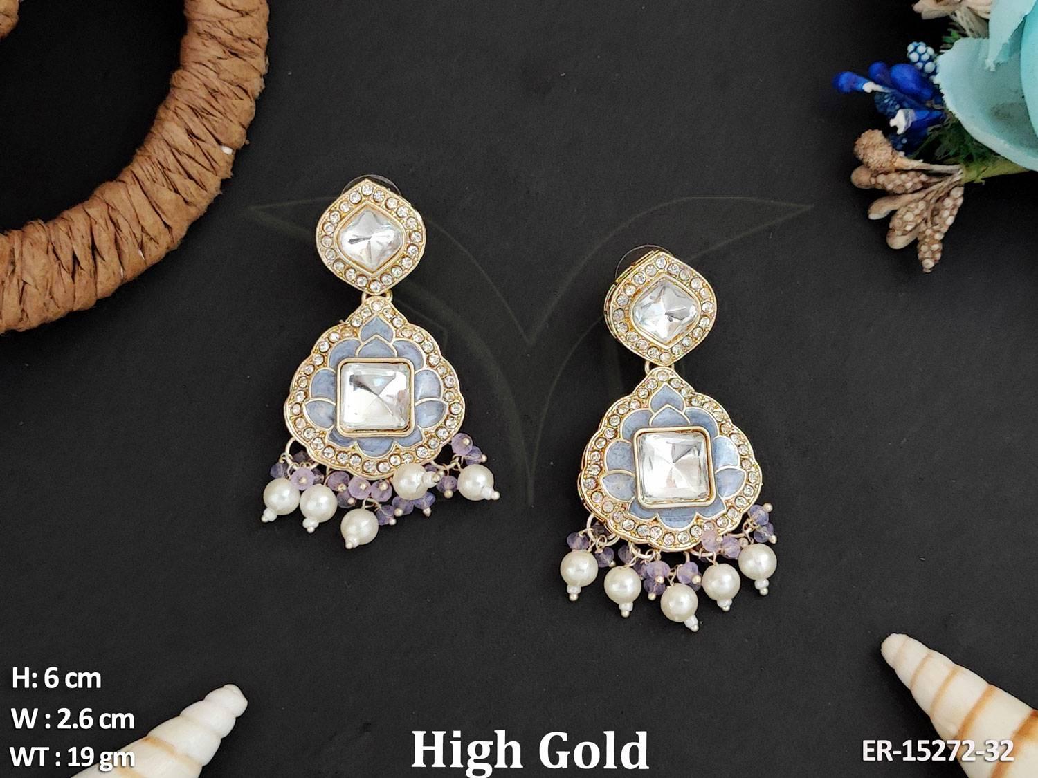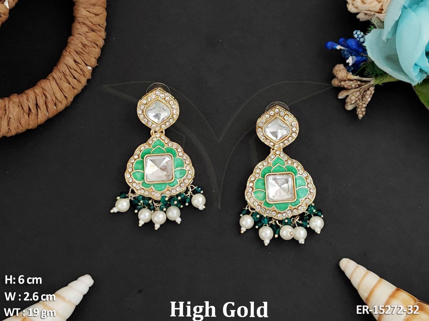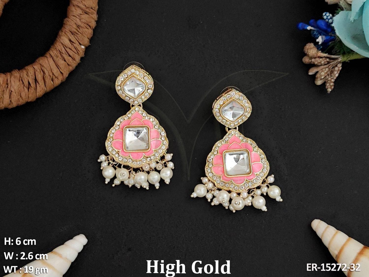 - Beautiful Designer High Gold Polish Clustered Pearl Fancy Style Earrings
