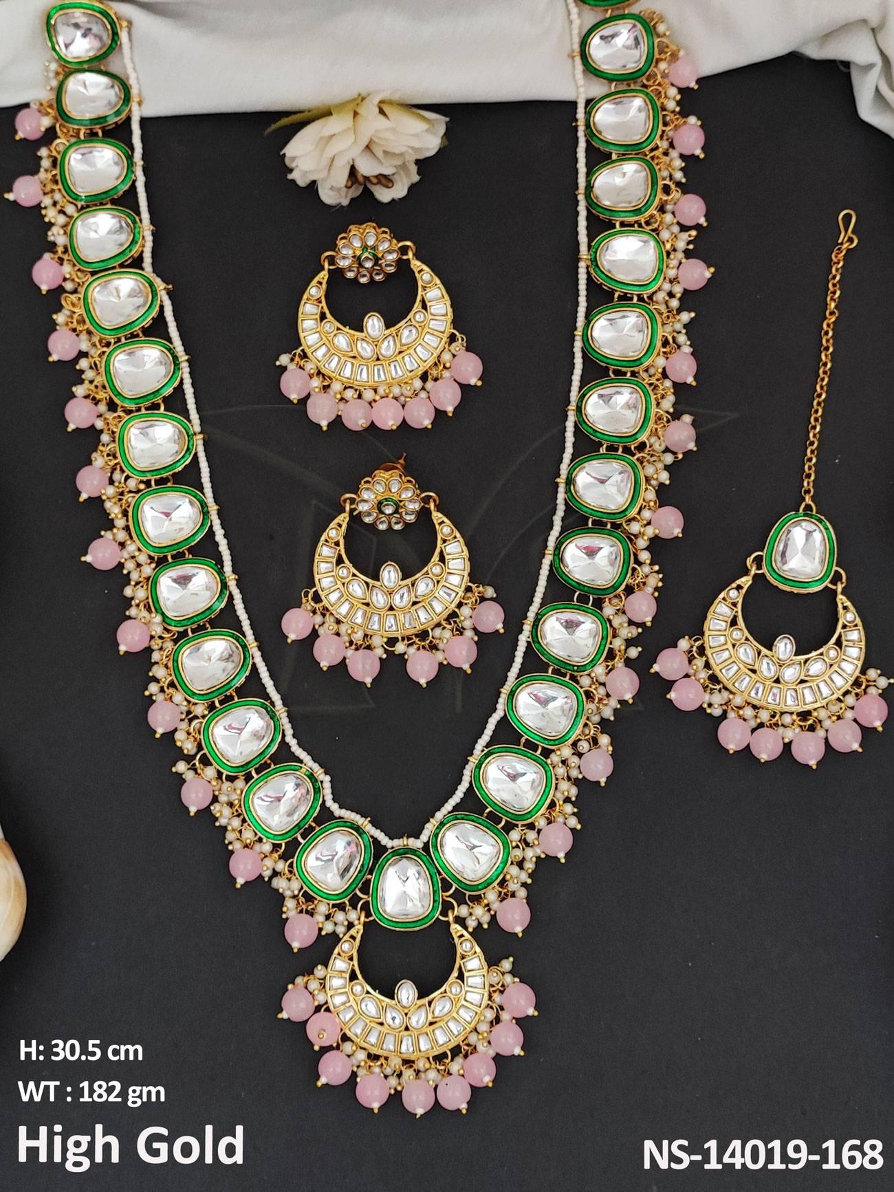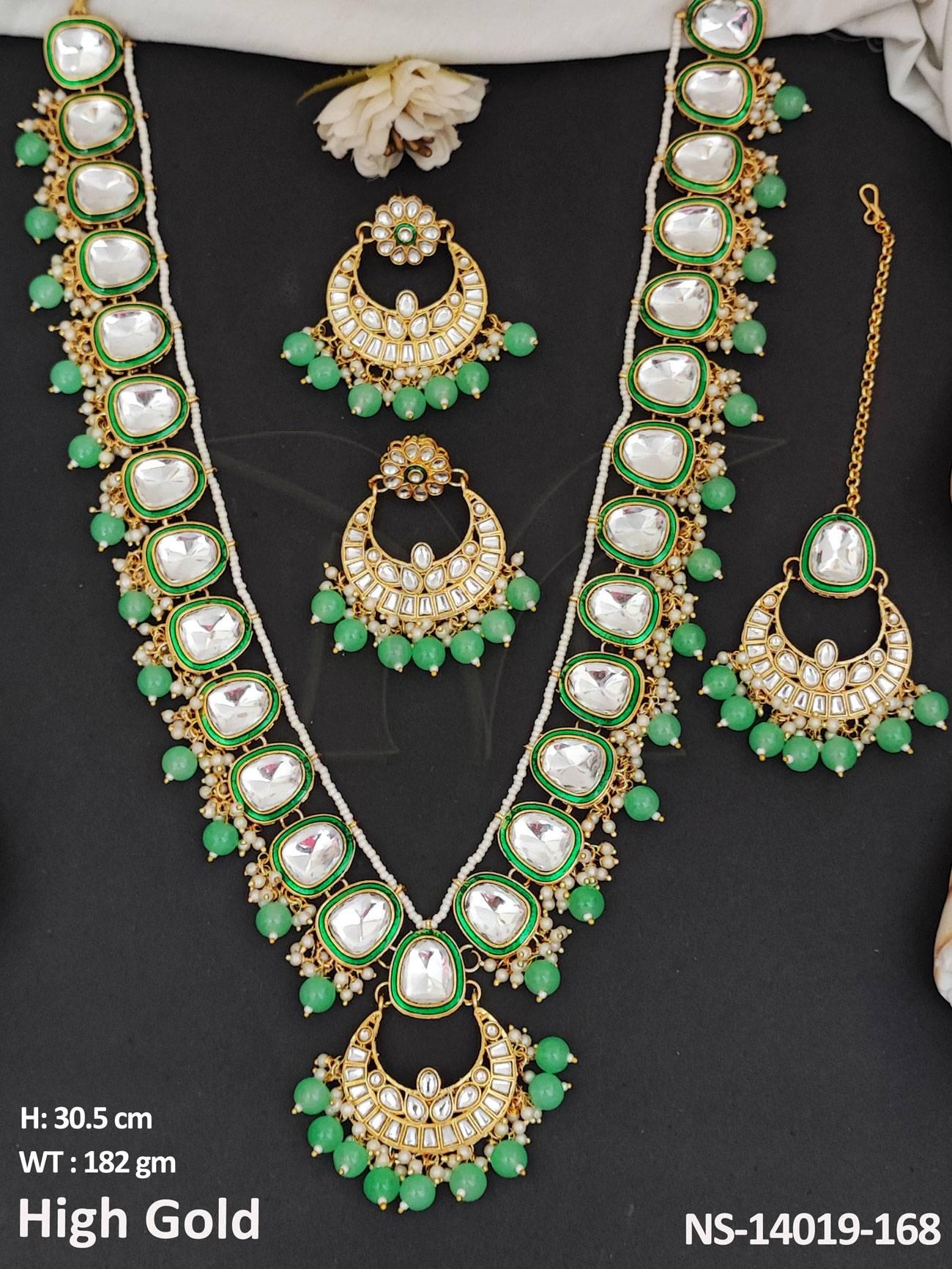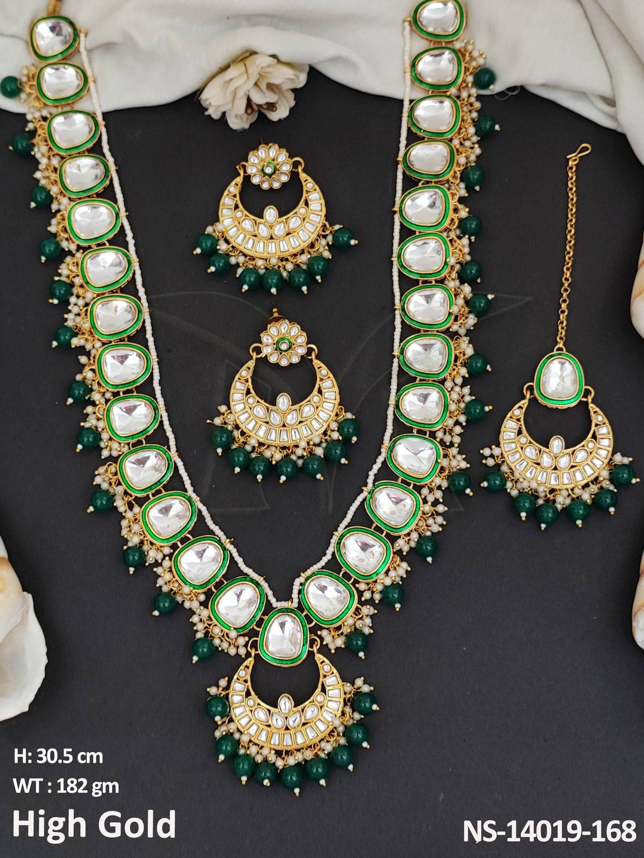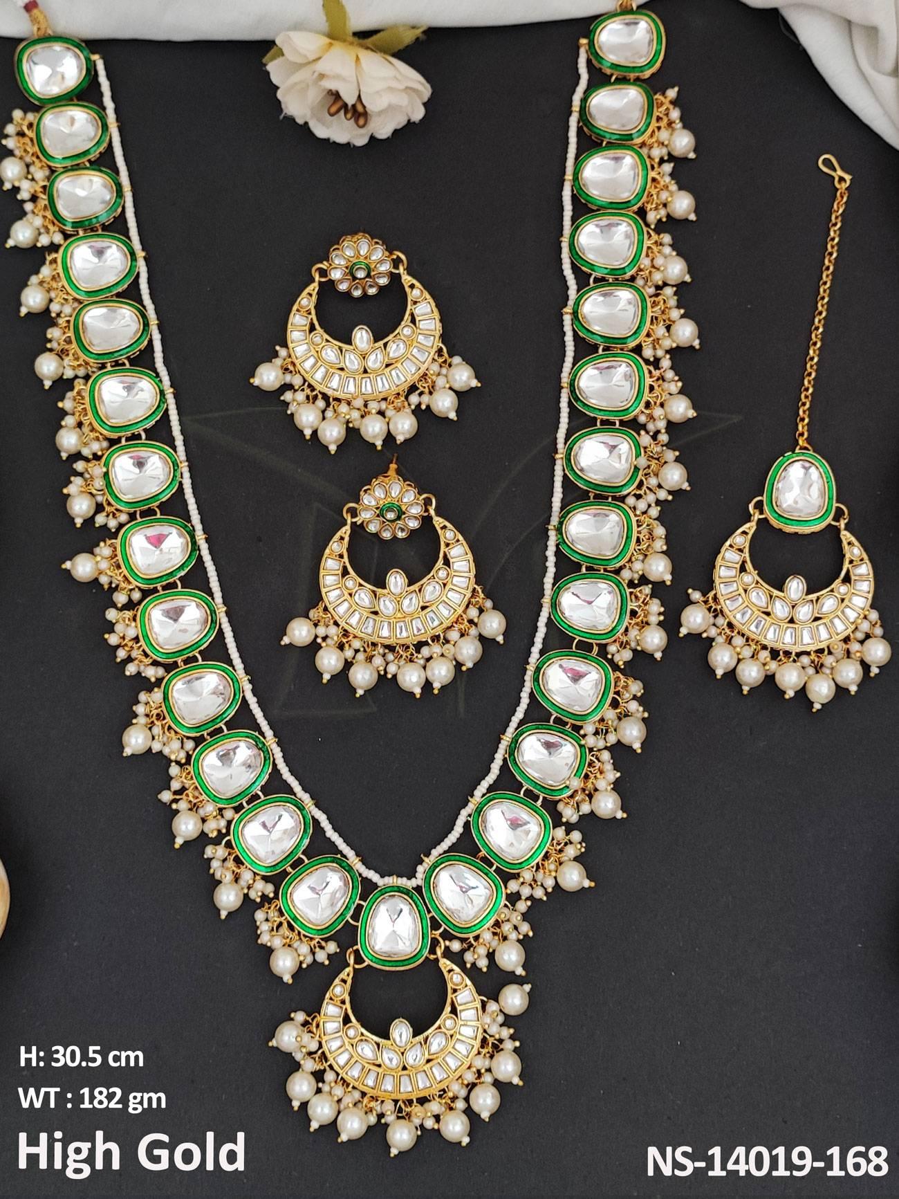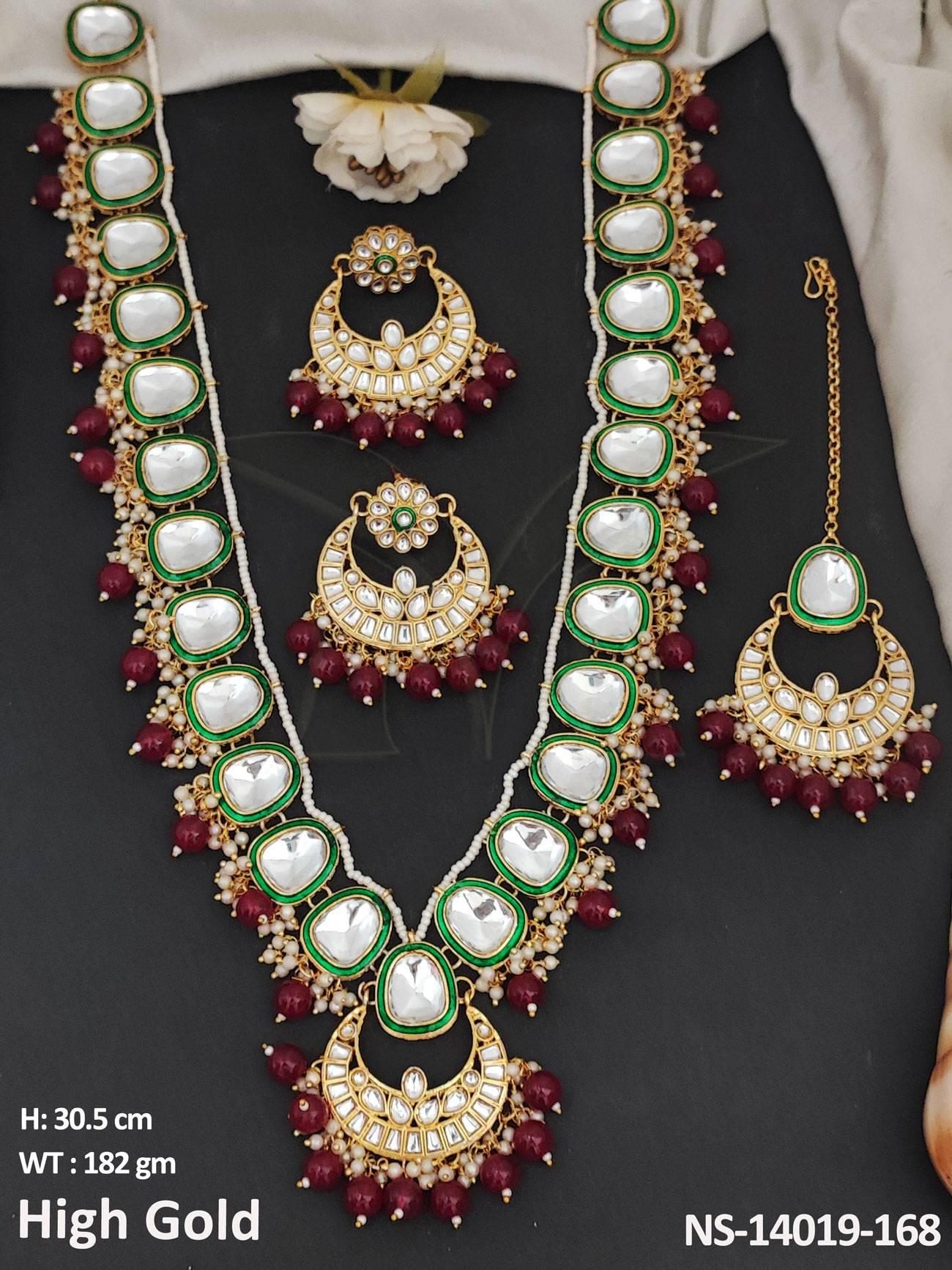 - Chand Design High Gold Polish Fancy Style Kundan Long Necklace Set