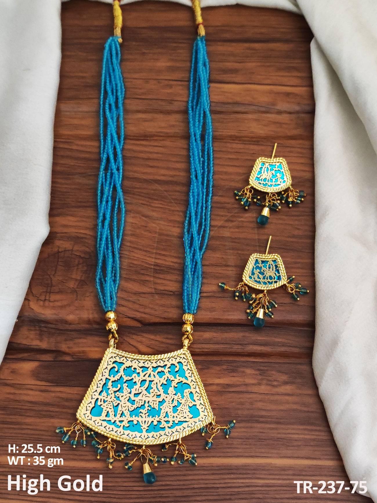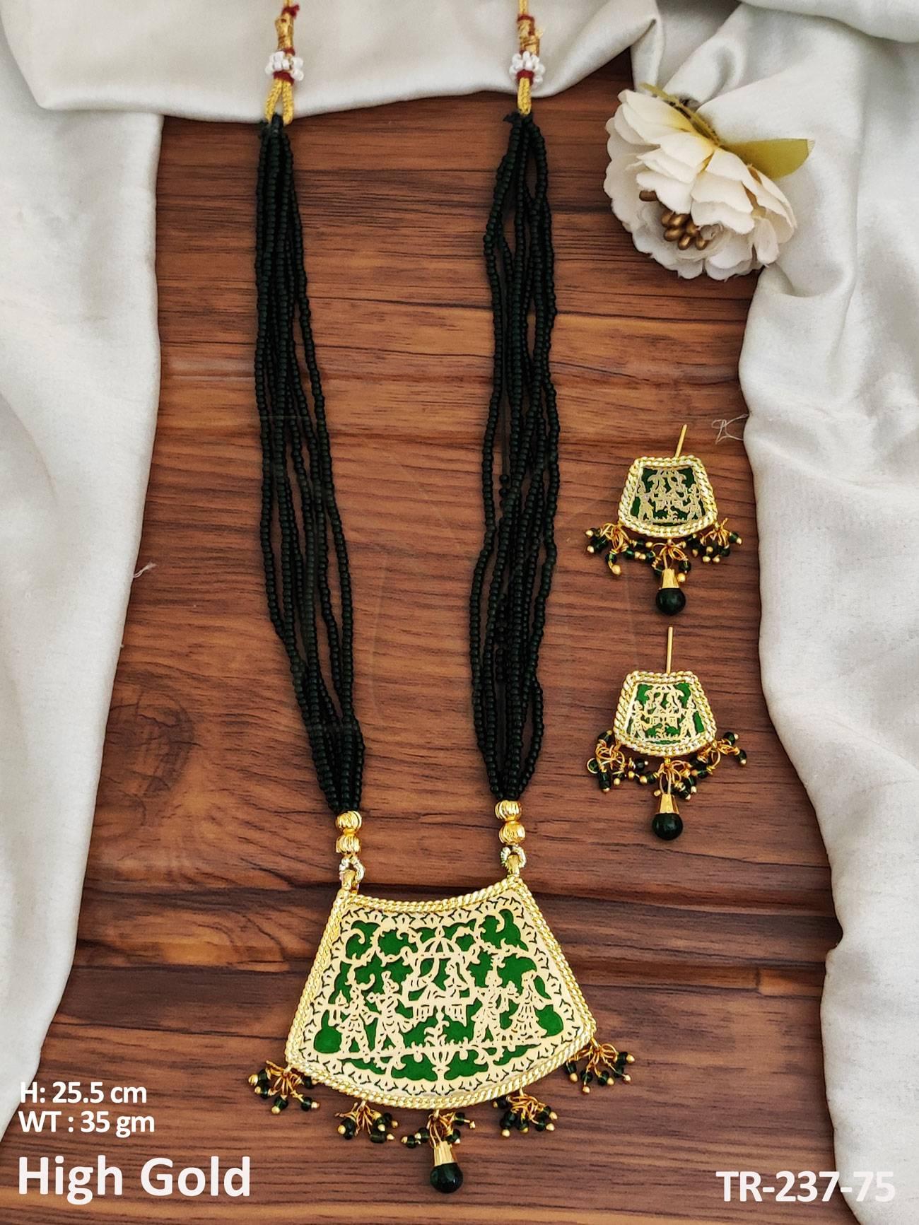 - Designer Fancy Design Party wear Beautiful High Gold Polish Thewa Pendant Necklace Set