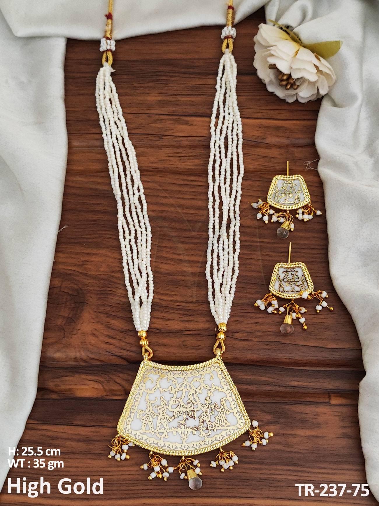 Designer Fancy Design Party wear Beautiful High Gold Polish Thewa Pendant Necklace Set