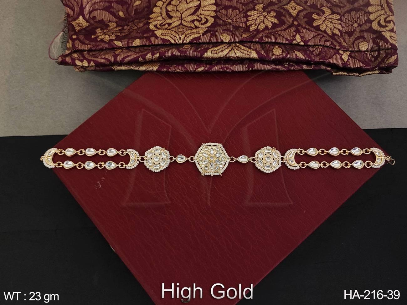 - Fancy Design Party wear Beautiful Kundan Jewellery High gold Polish Hair Accessories Sheeshpool Matha Patti