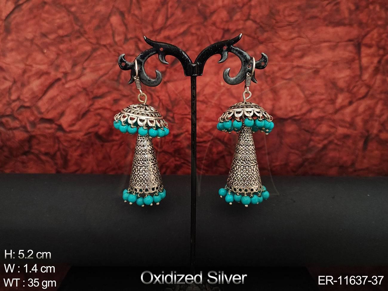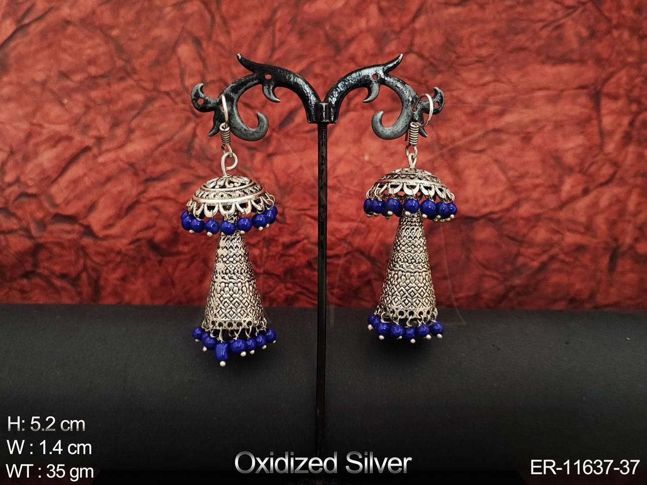 - Fancy Design Party wear Beautiful Oxidised Silver Polish Designer Oxidised Jewellery Long Jhumka Earring
