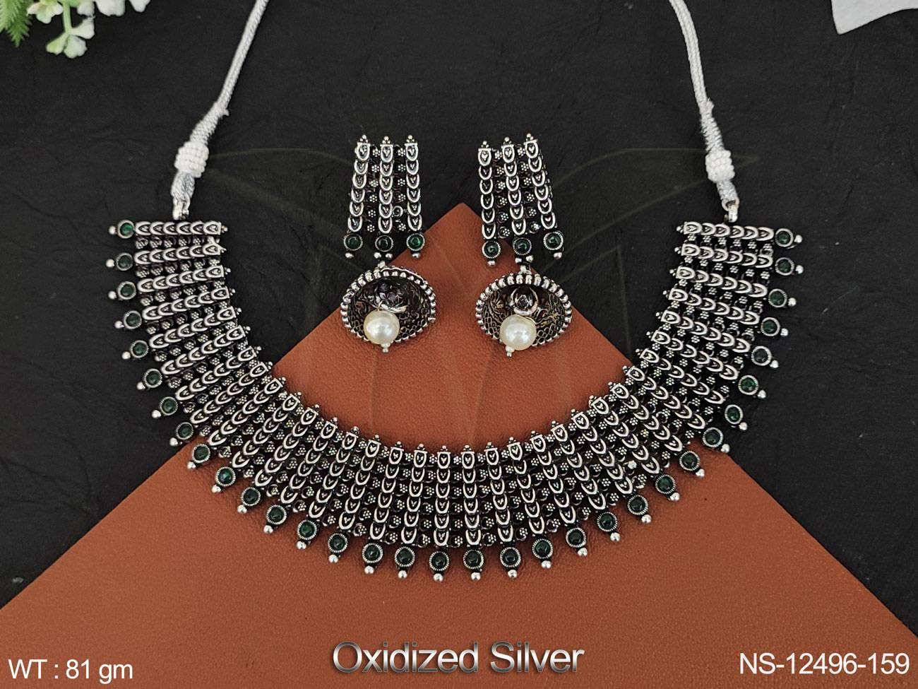2. Fancy Style Party wear Beautiful Oxidised Silver Polish Oxidised Jewellery Oxidised Short Necklace Set