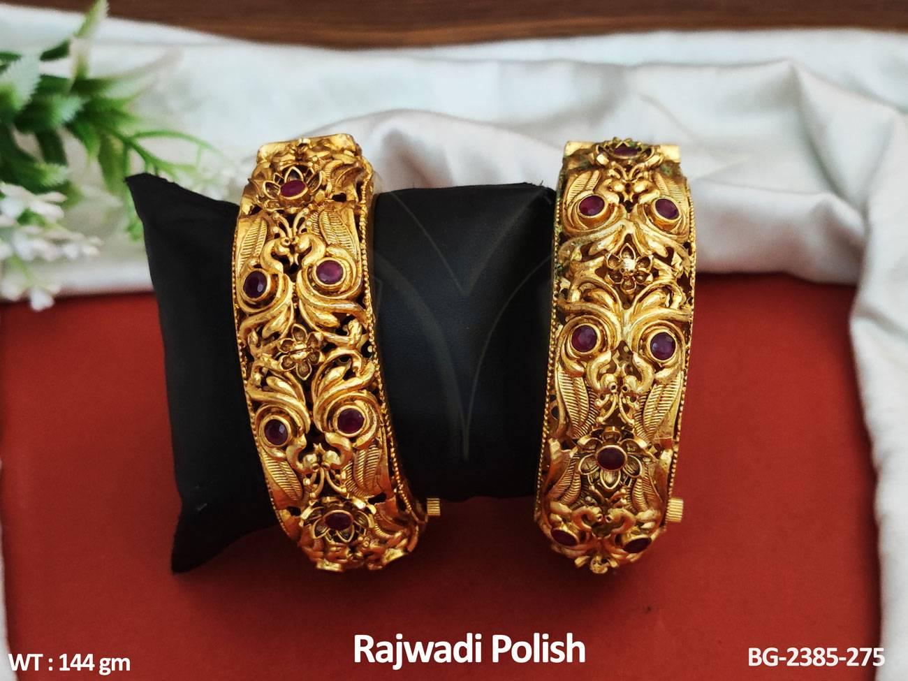 - Fancy Style Rajwadi Polish Antique Jewellery Party Wear 2 Pc Bangles Set