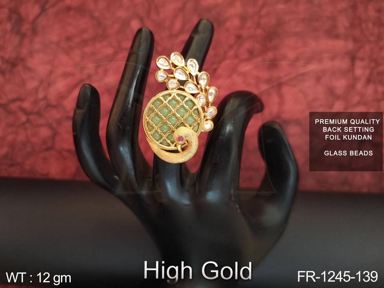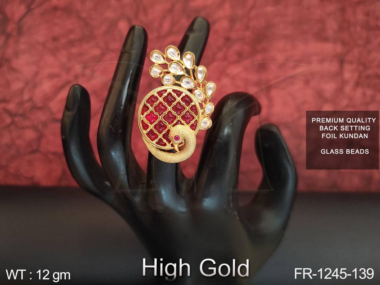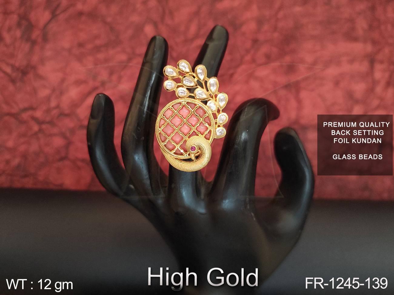 2. Full Kundan Stones Glass Beads High gold Polish Designer Finger Ring