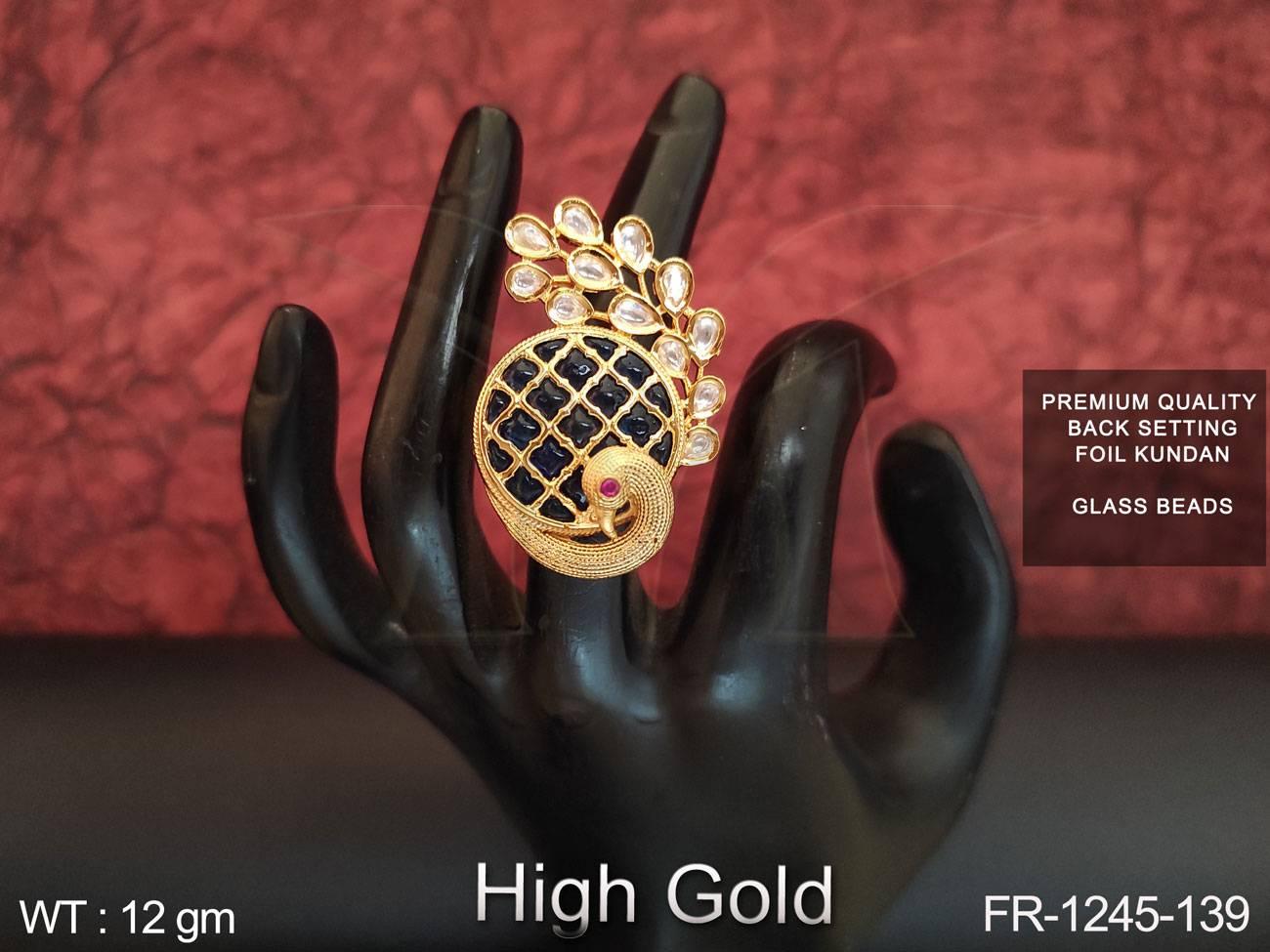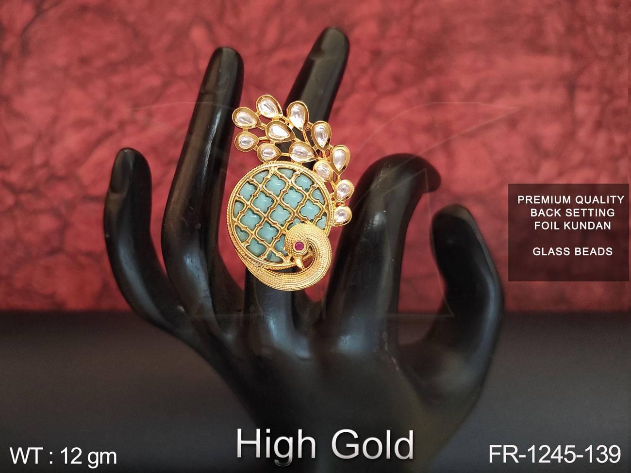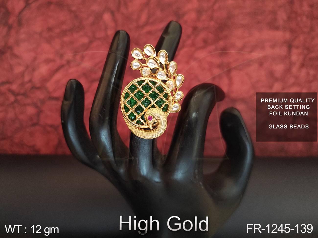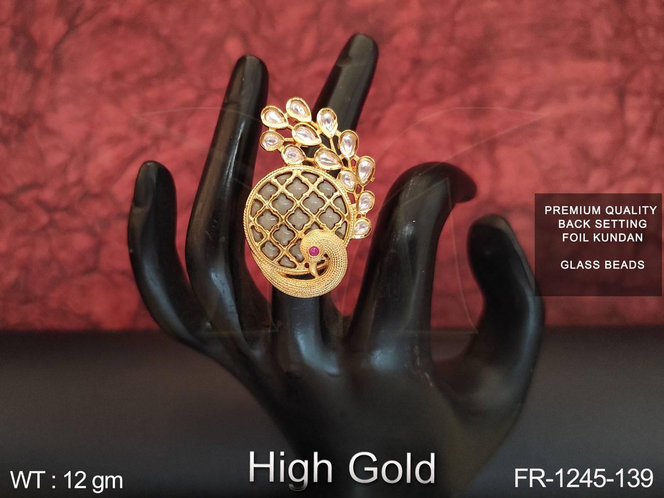 2. Full Kundan Stones Glass Beads High gold Polish Designer Finger Ring