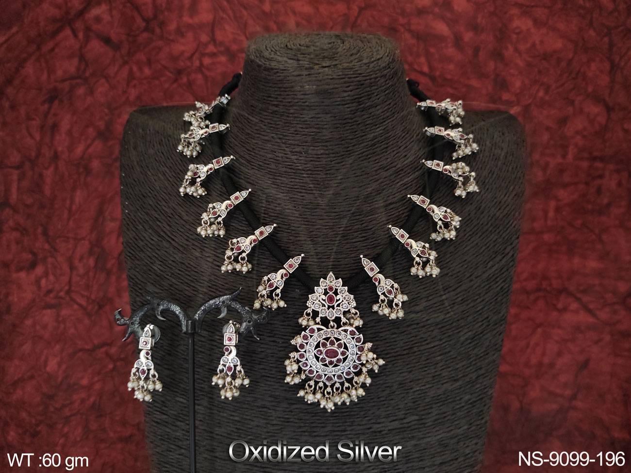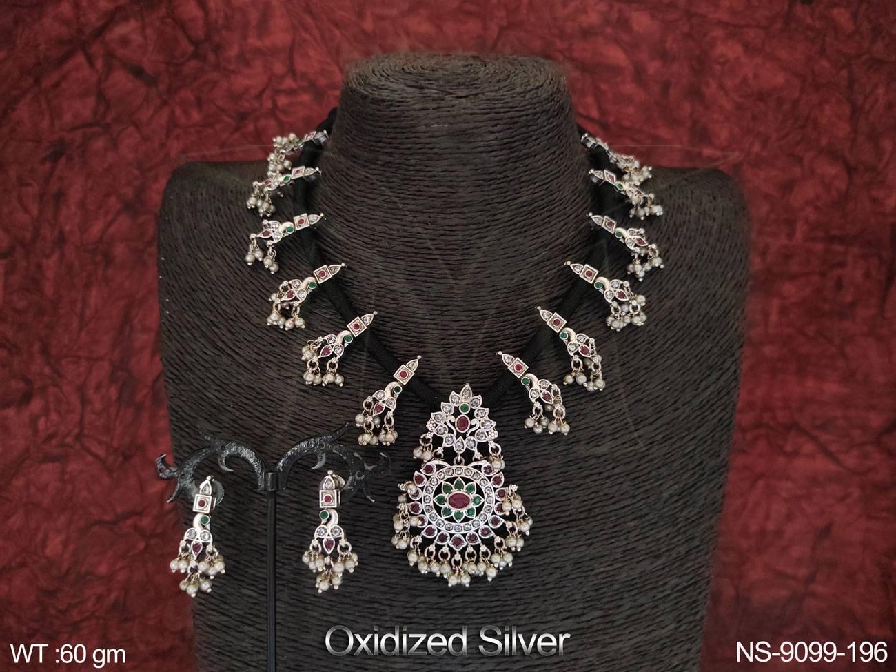 - Full Stones Beautiful Oxidised Silver Polish Party wear Necklace Set