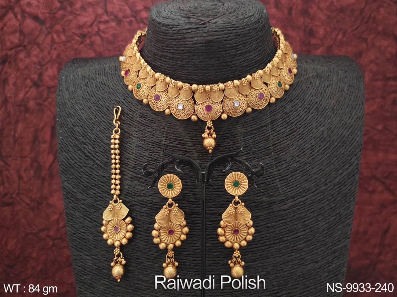 2. Full Stones Beautiful Rajwadi Polish Antique Party wear Necklace Set