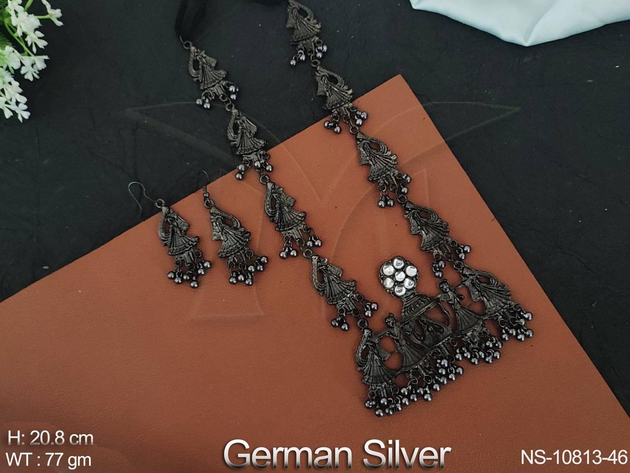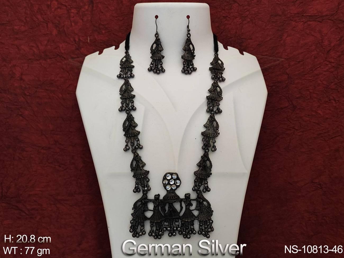 - German Silver Fancy Style Oxidised Jewellery Designer Fancy Style Long German Silver Necklace Set