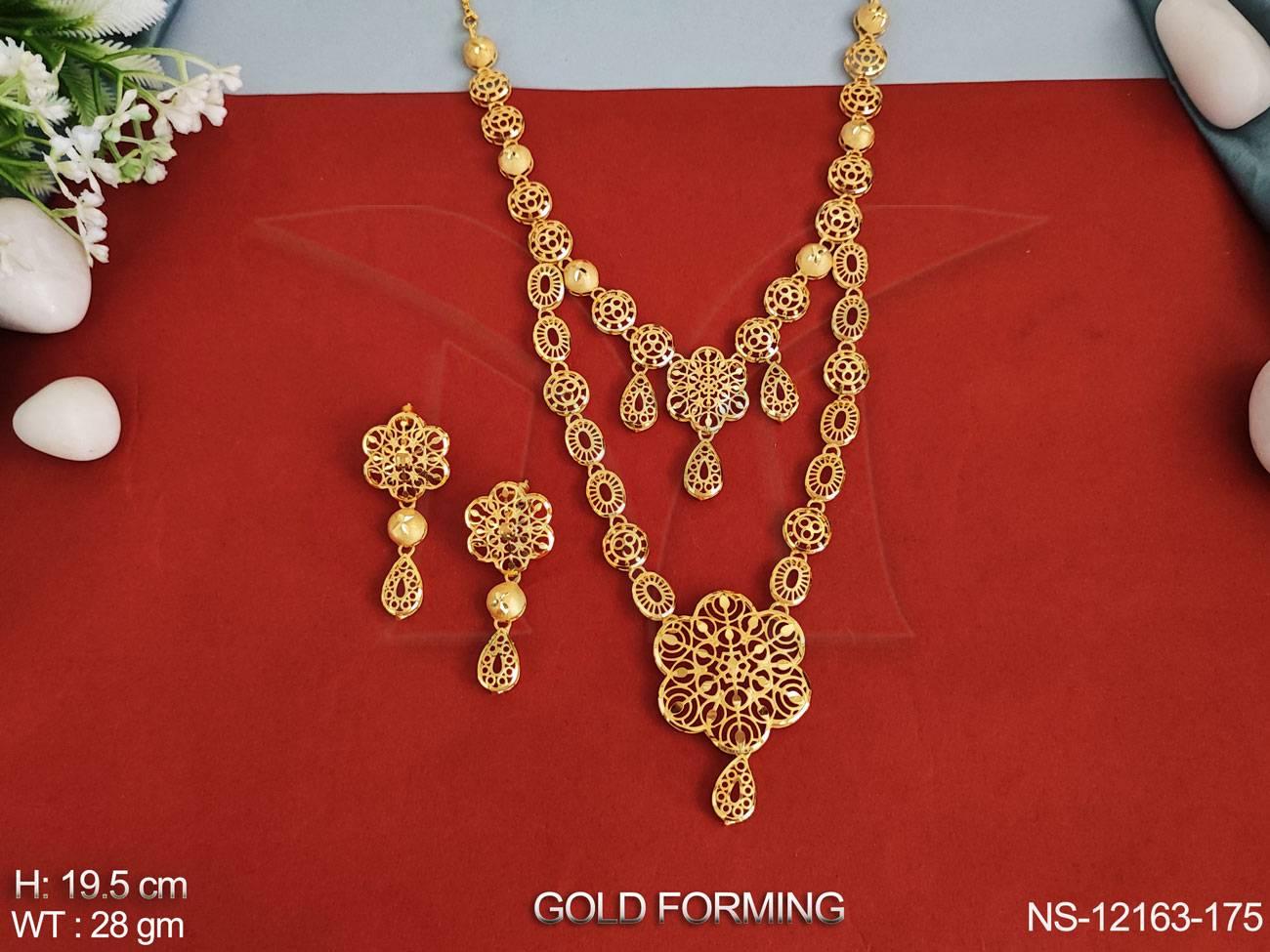 2. Gold Forming Polish Fancy Design Beautiful Look Gold Forming Double Layer Long Necklace Set