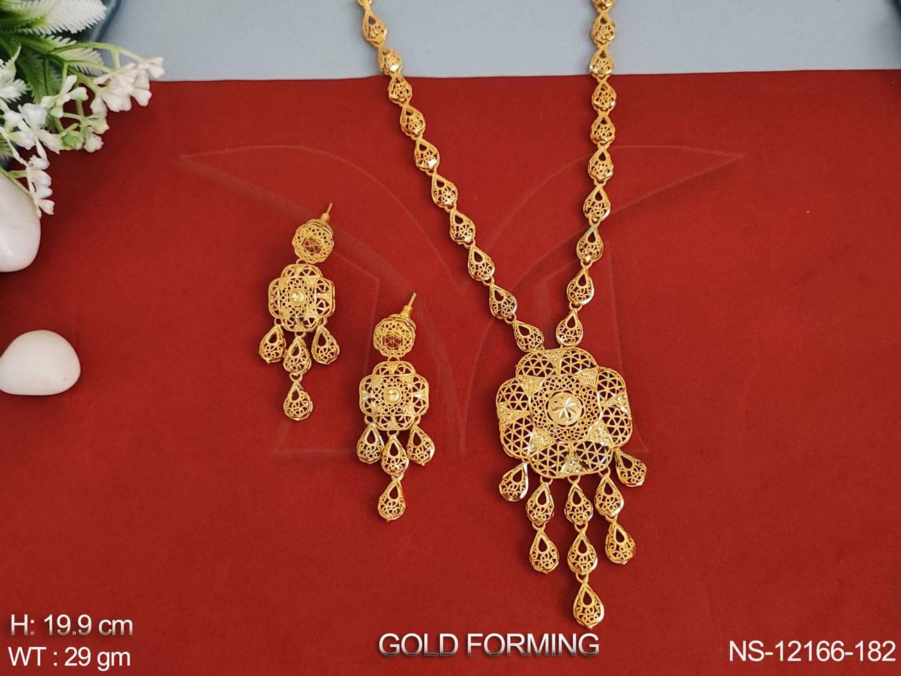 - Gold Forming Polish Fancy Style Designer Beautiful Gold Forming Long Necklace Set
