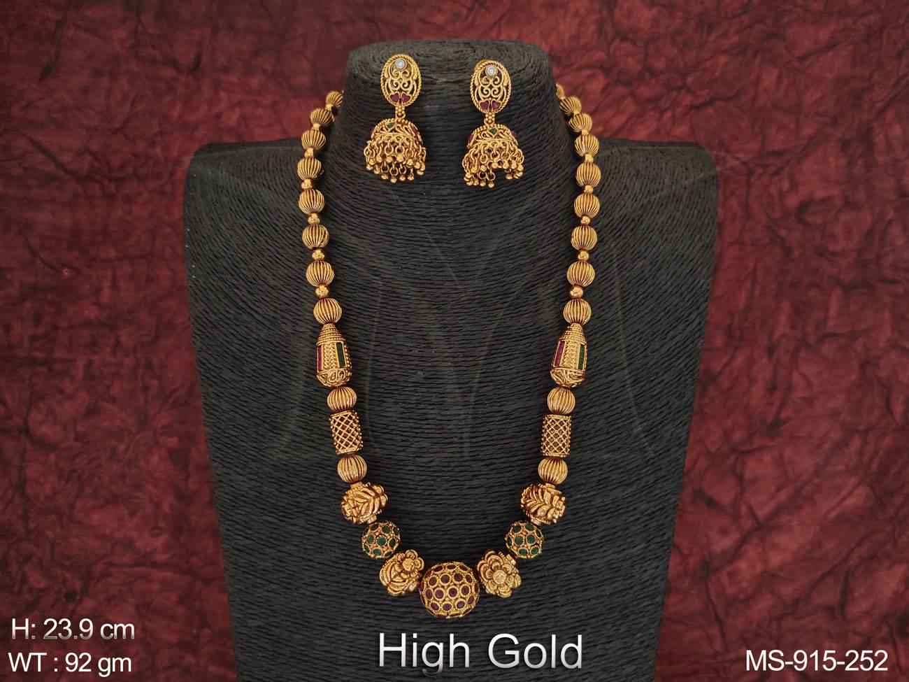 - High Gold Polish Fancy Design Party Wear Antique Beaded Mala Set