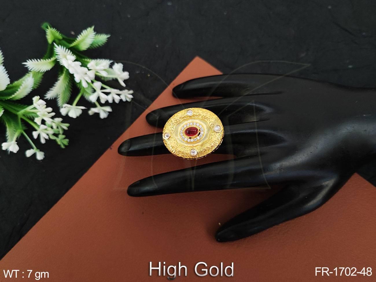 2. High Gold Polish Fancy Desing Cz Ad Stones Party wear Desinger American Diamond Jewelery Finger Ring