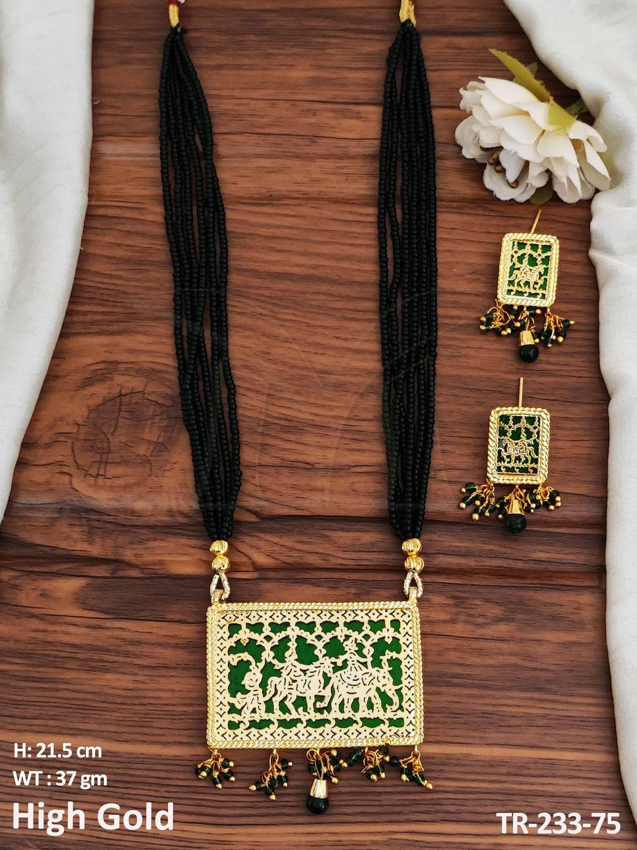- High Gold polish Thewa Jewelry Party Wear Indian Beautiful Design Thewa Pendant Set
