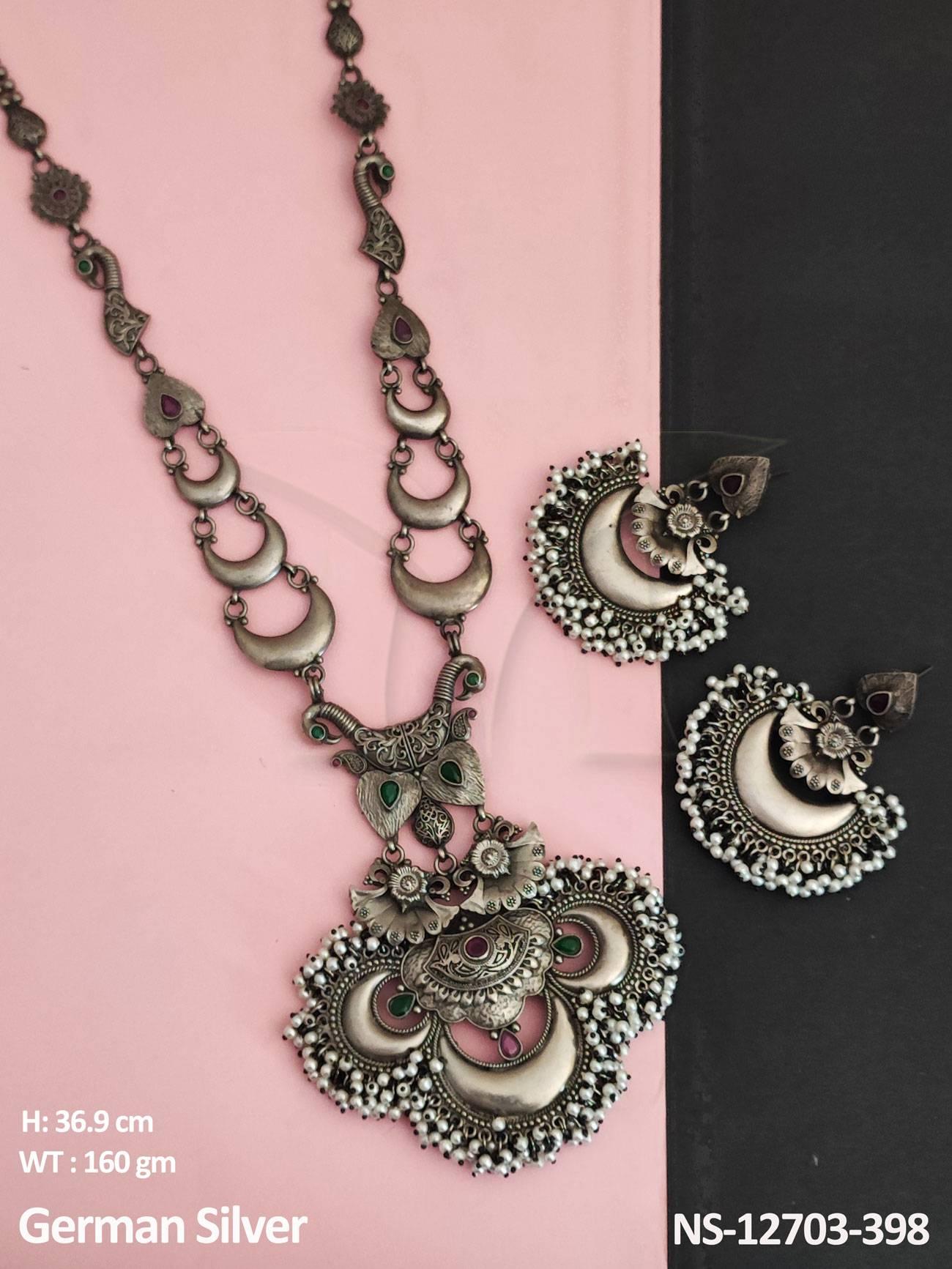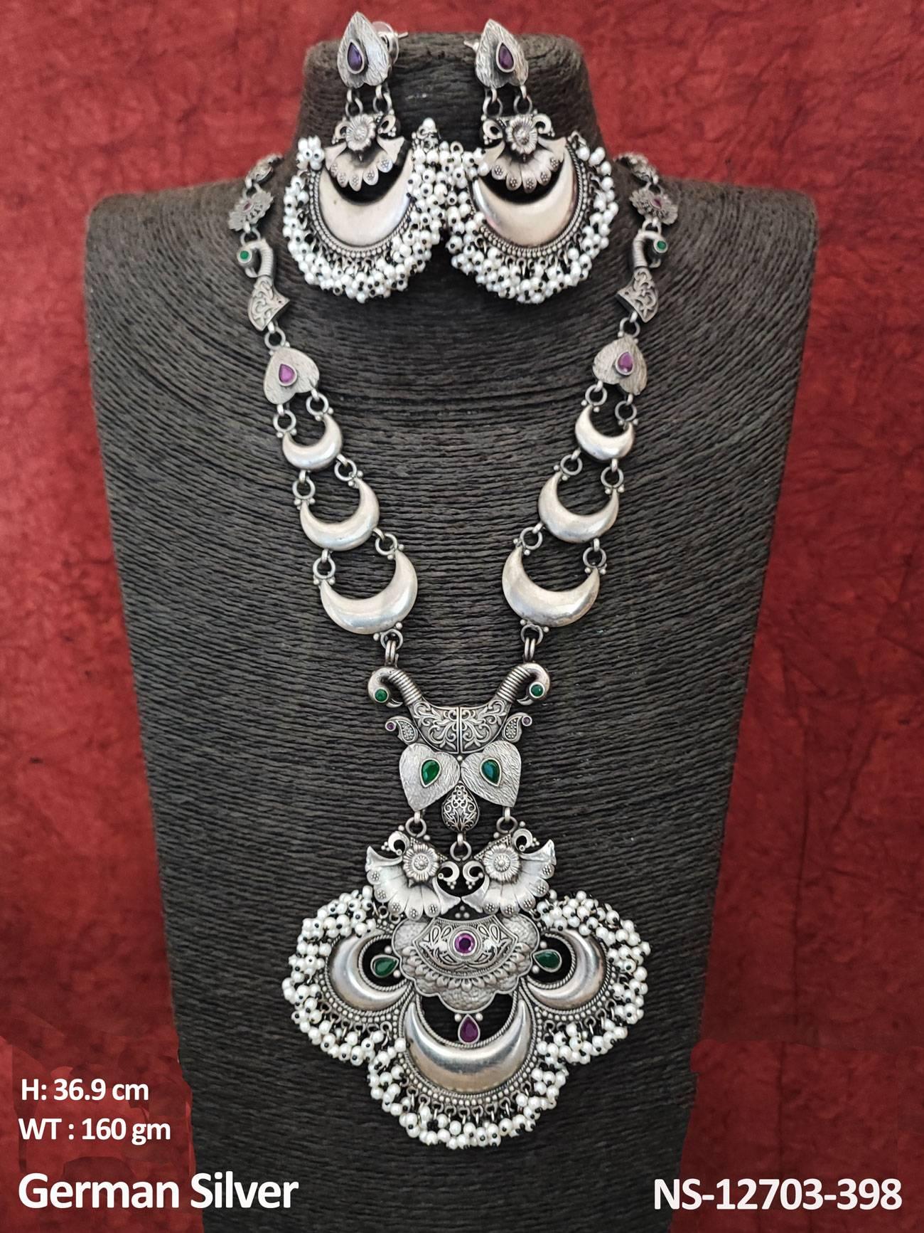 - Jewelry Accessories Women German Silver Polish Designer Party Wear Long Necklace Set