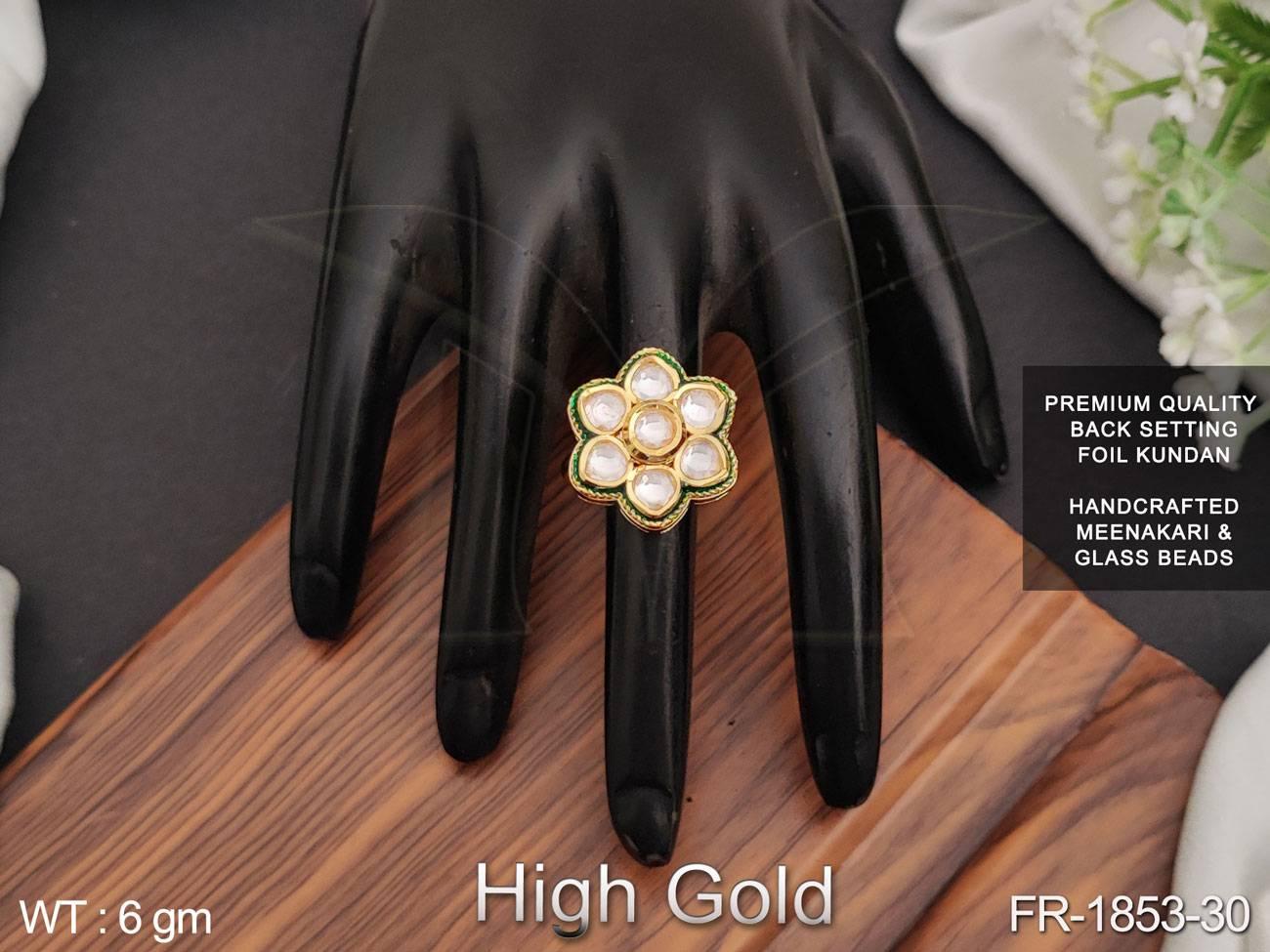 - Kundan Jewellery Beautiful High Gold Polish Party Wear Handcrafted Meenakari Design Kundan Finger Ring