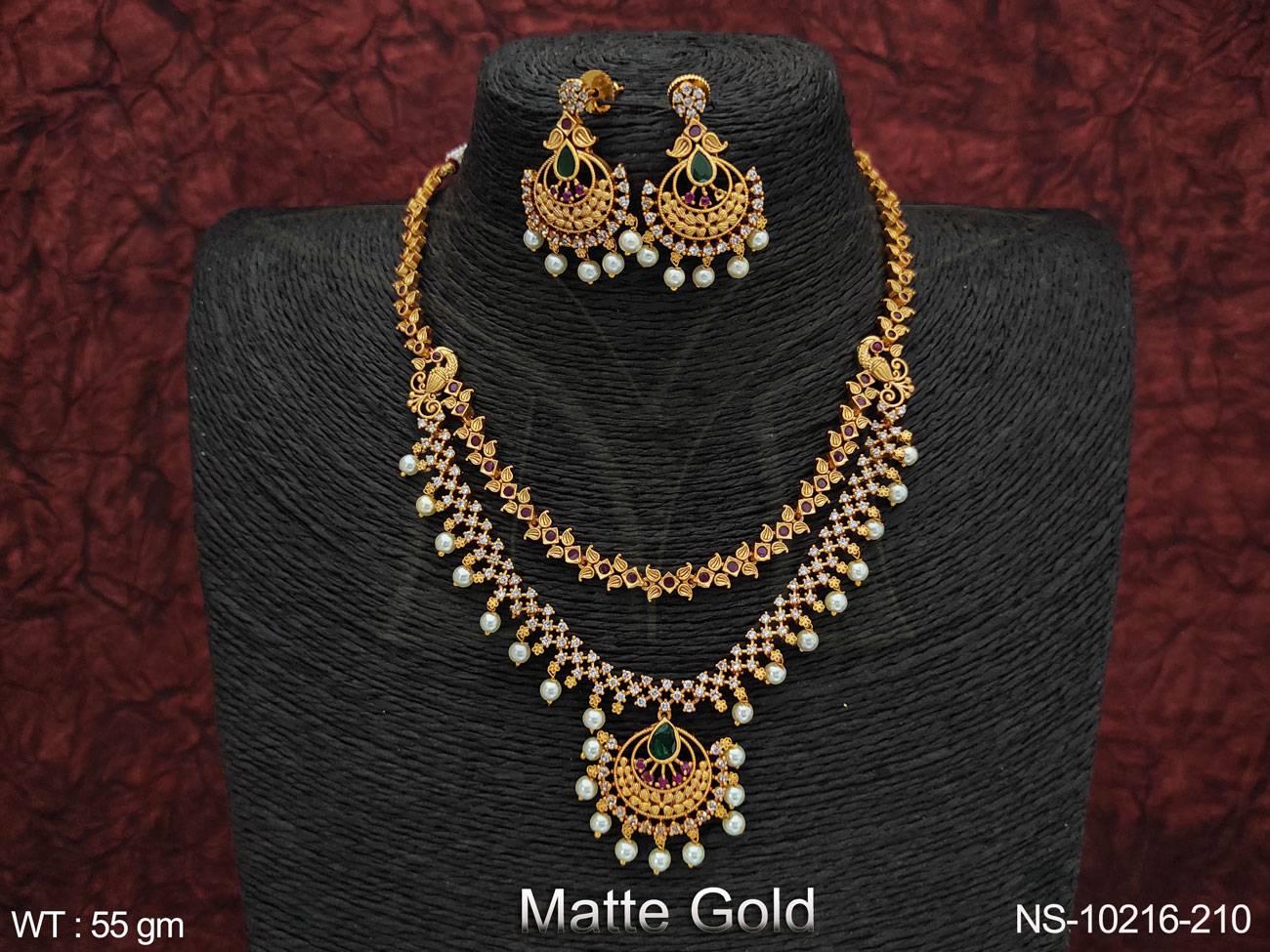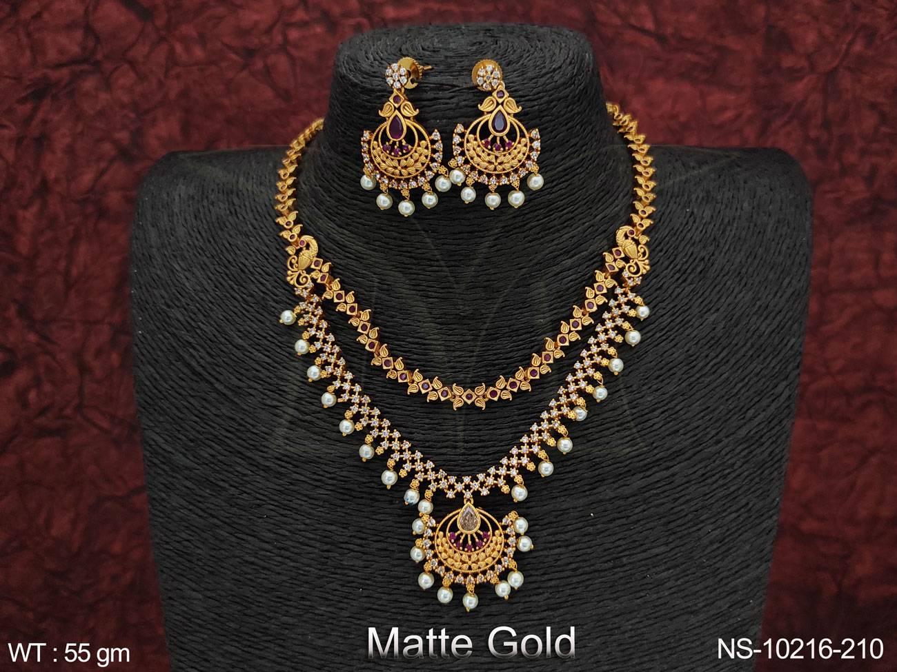 - Matte Gold Polish Designer Fancy Design Party wear Long Necklace Set