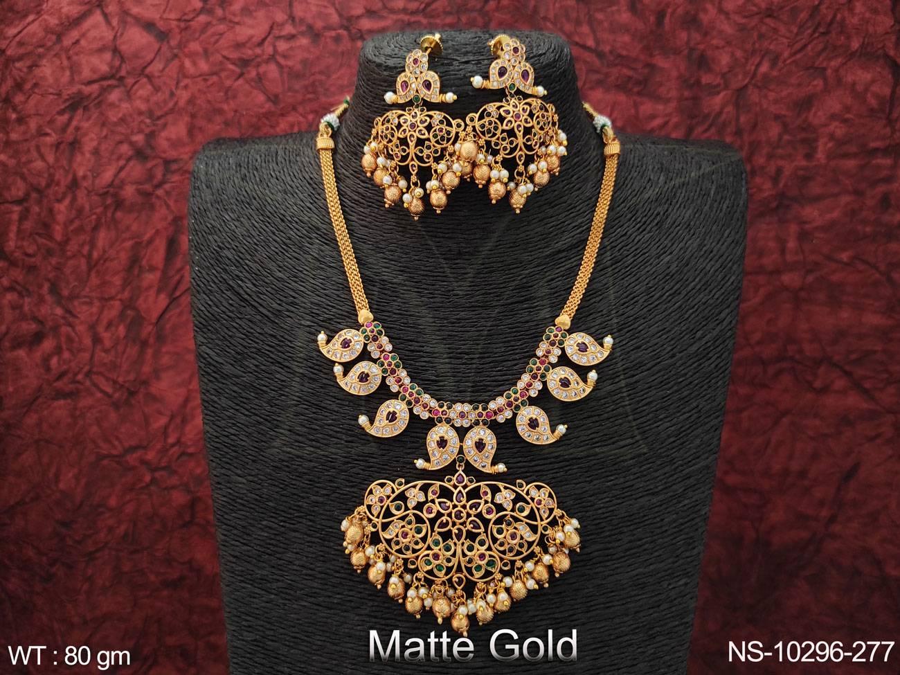 Matte Gold Polish Designer Fancy Style Party wear Kemp Design Short Necklace Set