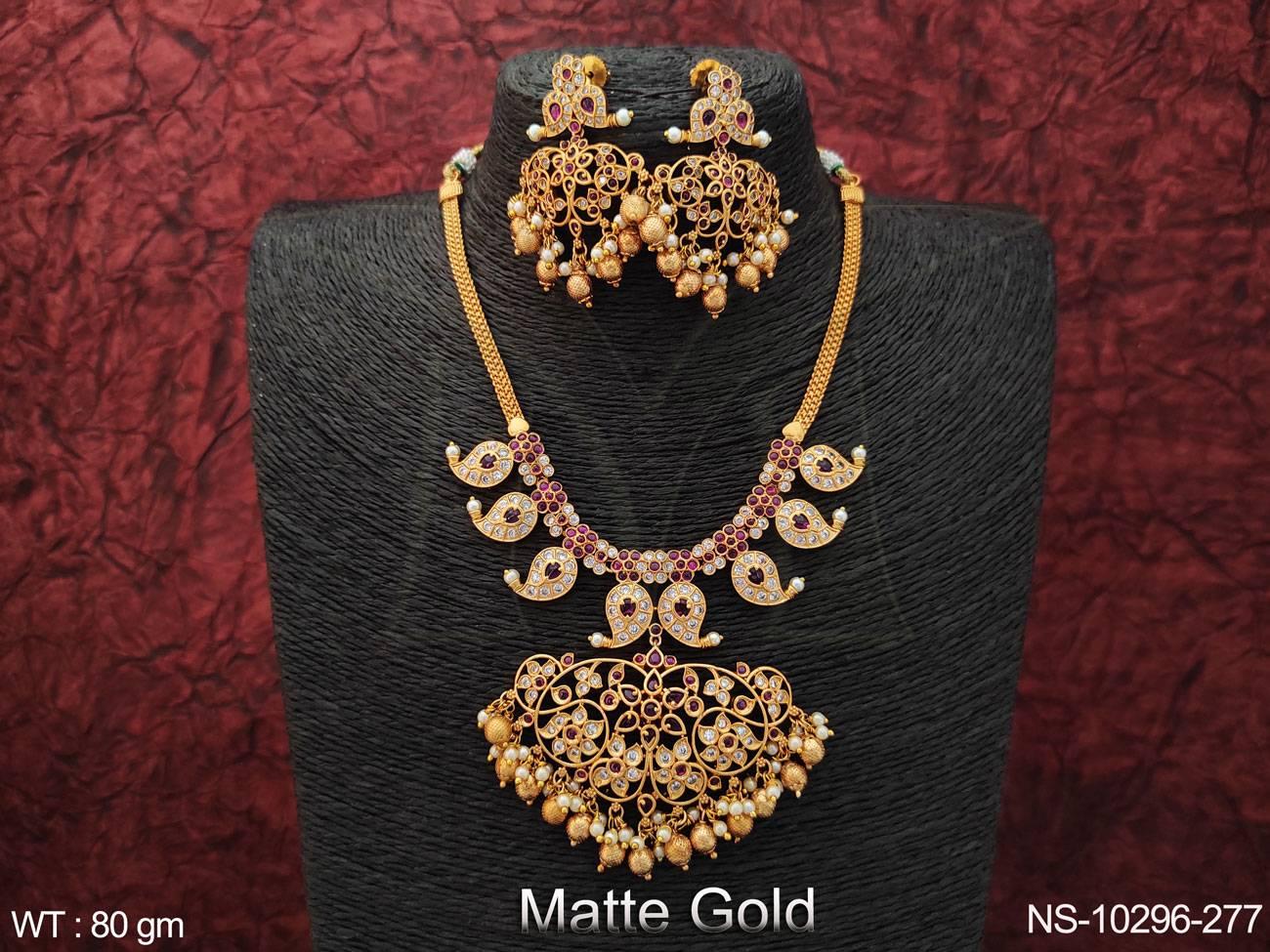 - Matte Gold Polish Designer Fancy Style Party wear Kemp Design Short Necklace Set