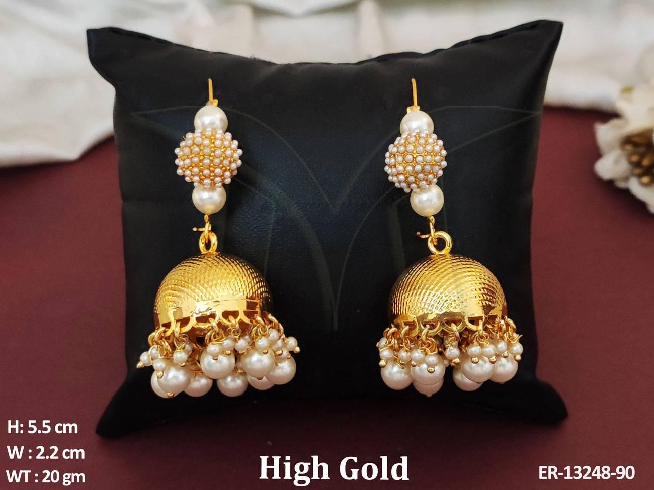 - North Style High Gold Polish Clustered Pearl Antique Jhumka Earrings