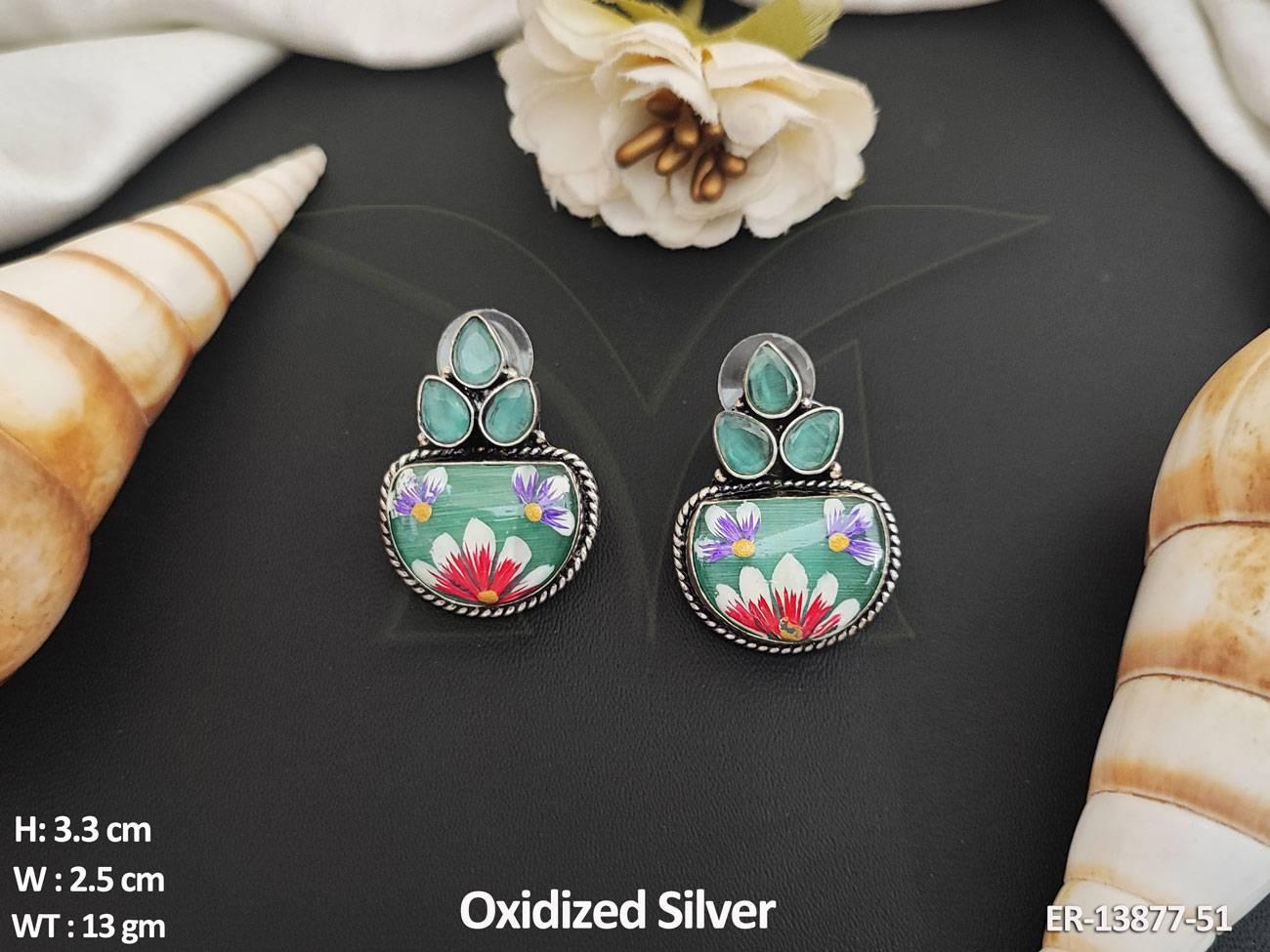 - North Style Oxidized Silver Polish Jewellery Tops Studs Earrings