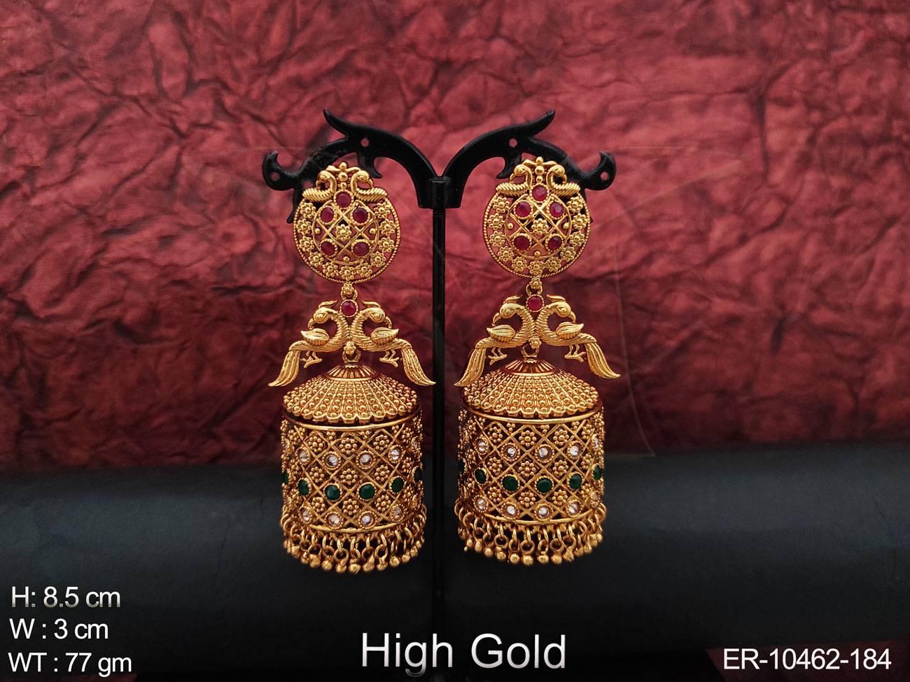 - Peacock Design Fancy Design High Gold Polish Beautiful Party wear Antique Jewellery Long Jhumka Earring