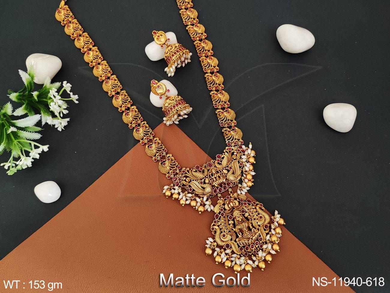 Temple Jewellery Temple Necklace Matte Gold Polish Designer Wear Party Wear Set