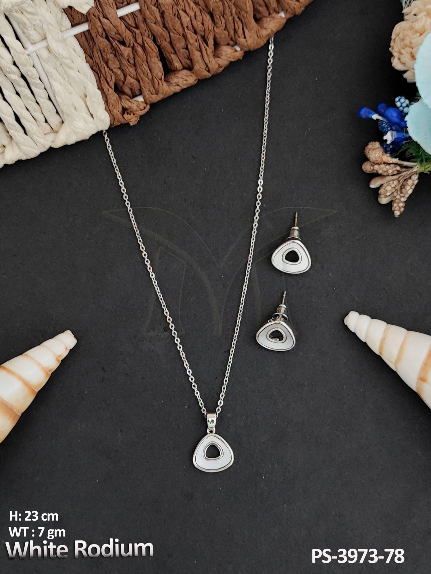 American Jewelery White Rodium Polish Fancy Full Stone designer pendant Set