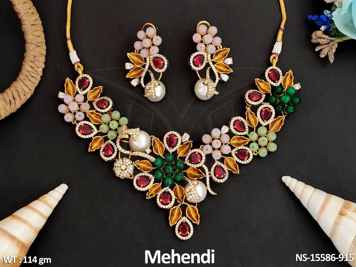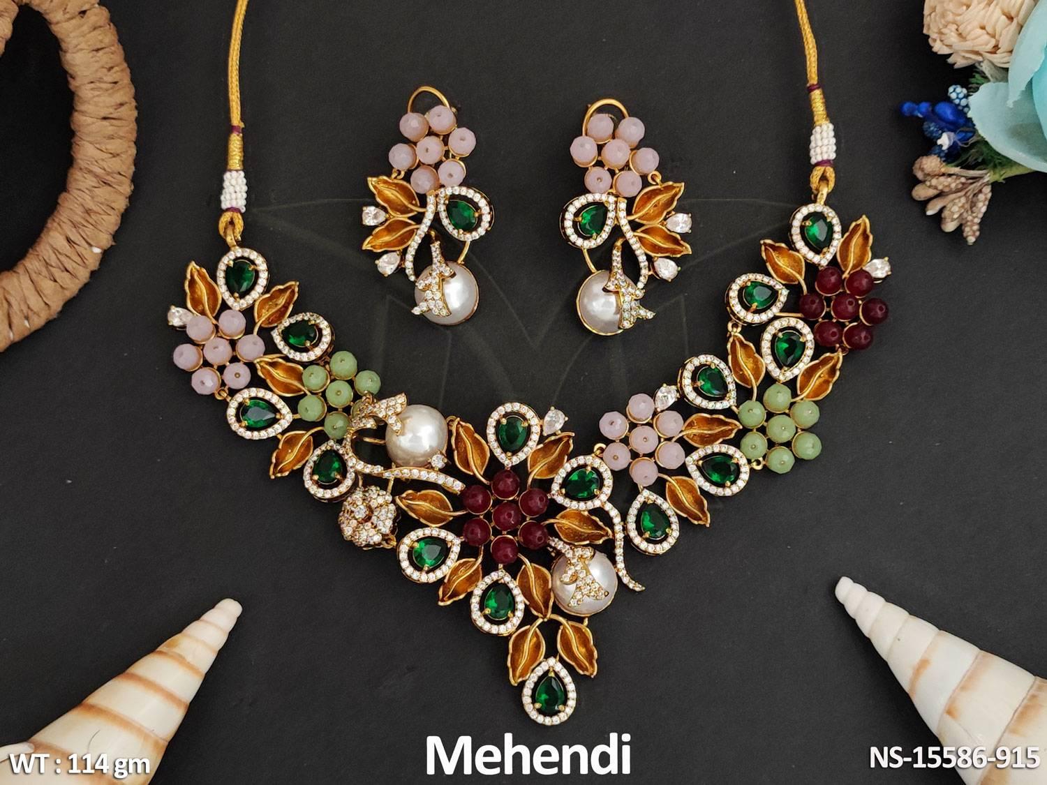 - American Jewellery Beautiful Mehendi Polish Fancy Style Necklace Set