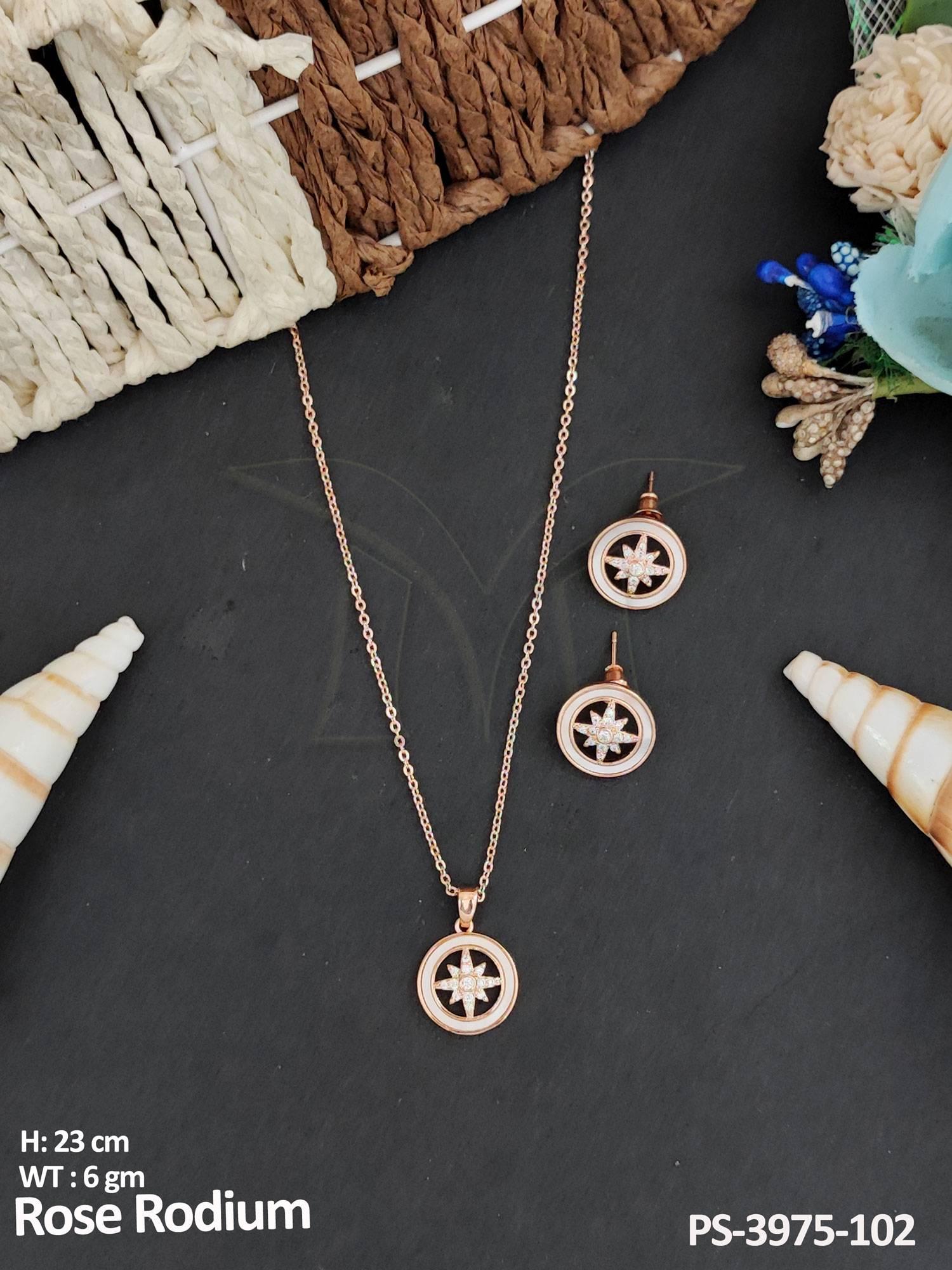 American Jewellery Rose Rodium Polish Fancy Full Stone Designer Pendant Set