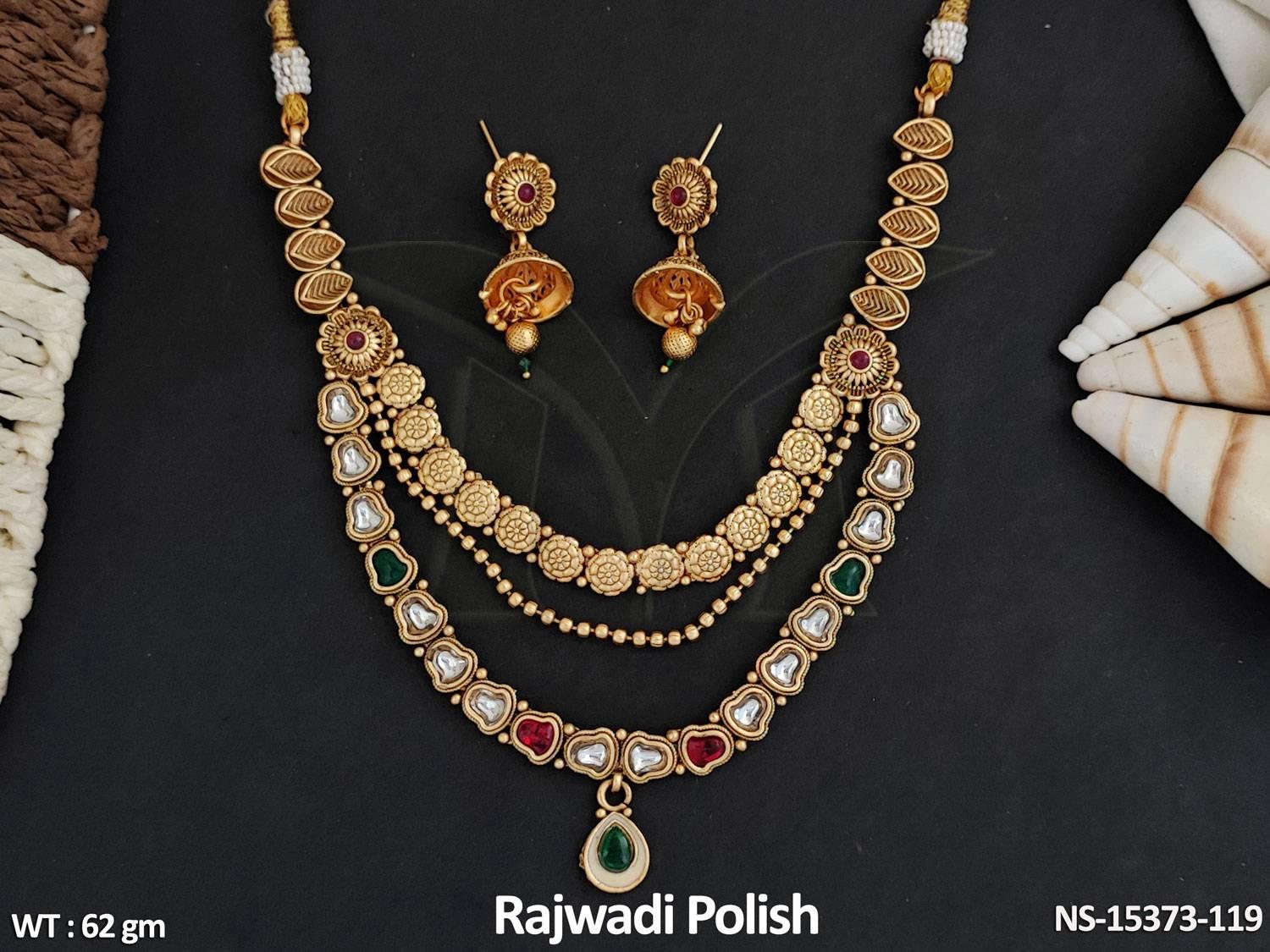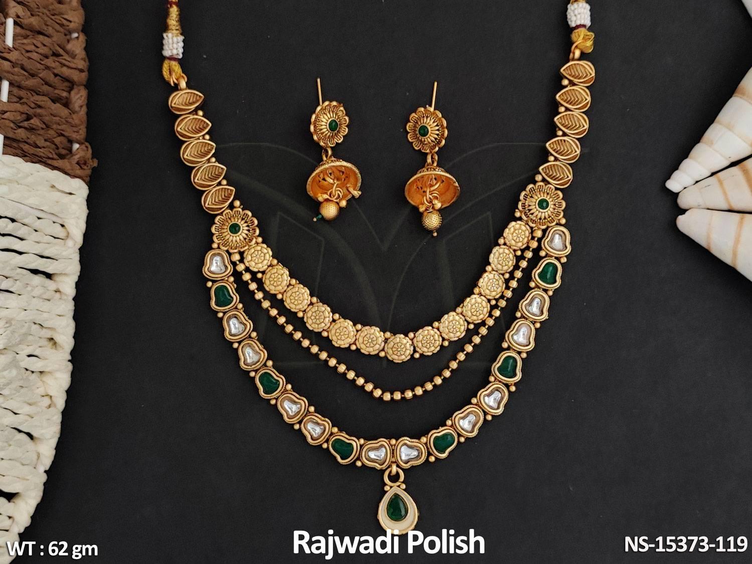 - Antique High Gold Polish Rajwadi Polish Party Wear Necklace Set