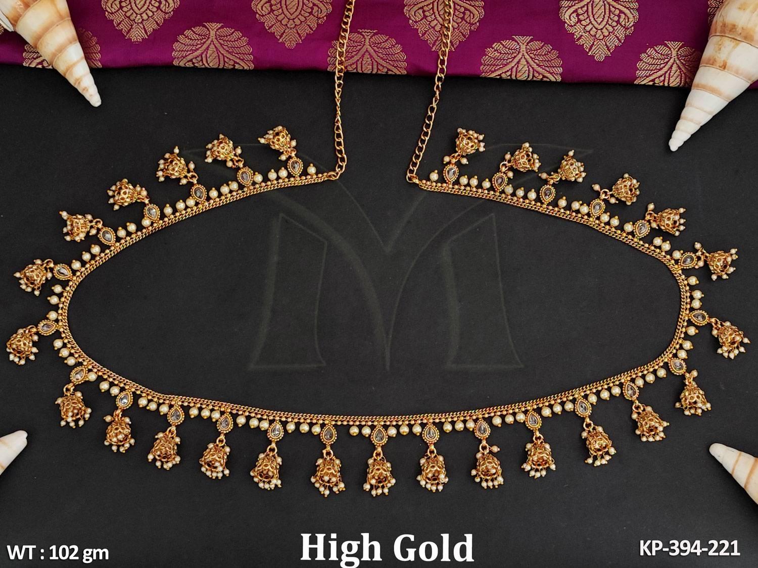 - Antique Jewellery Designer High Gold Polish Clustered Pearl Pearl Wear Kamarpatta