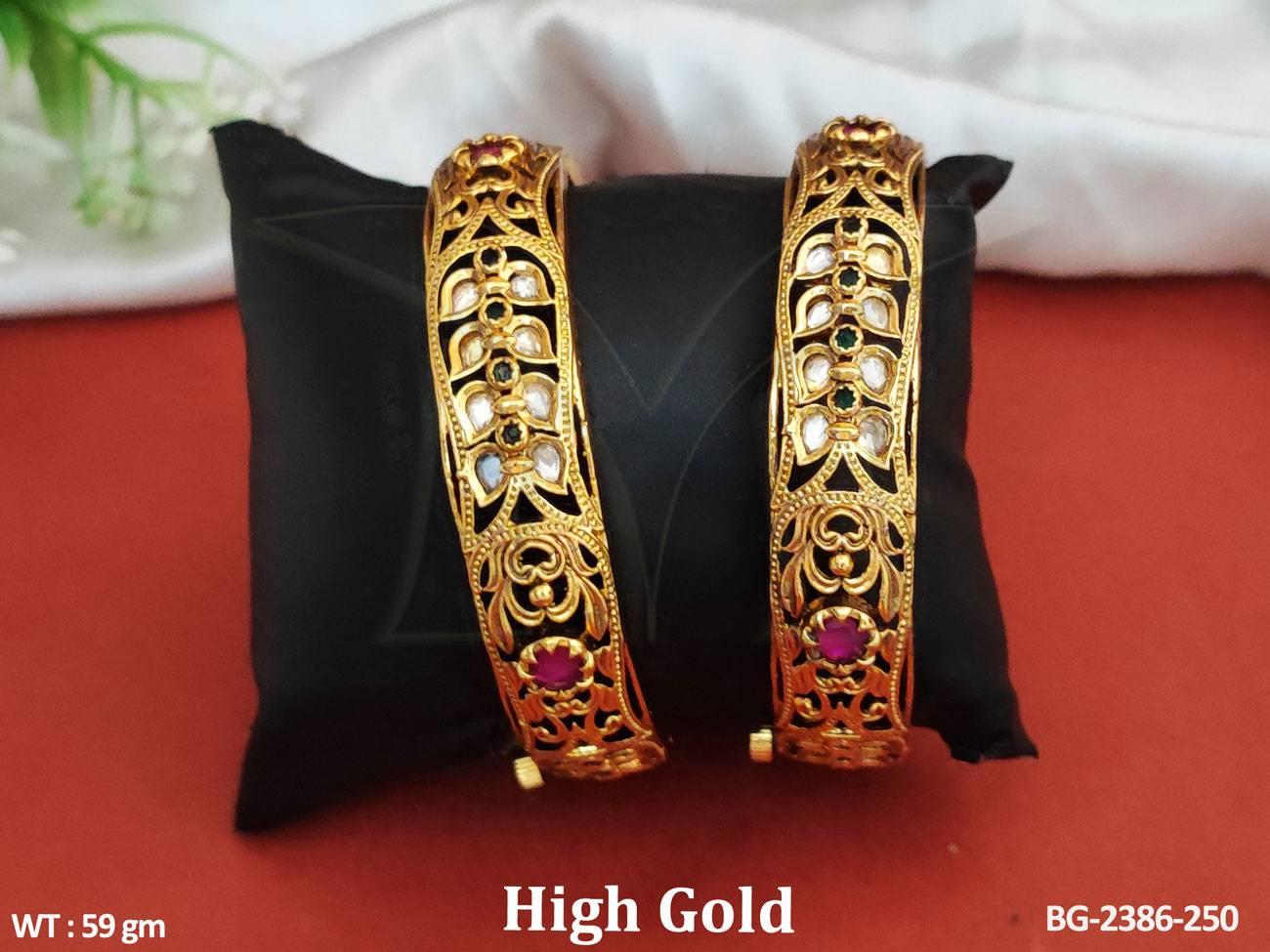 - Antique Jewellery Fancy Design High Gold Polish Party Wear Antique Bangles Set Of 2