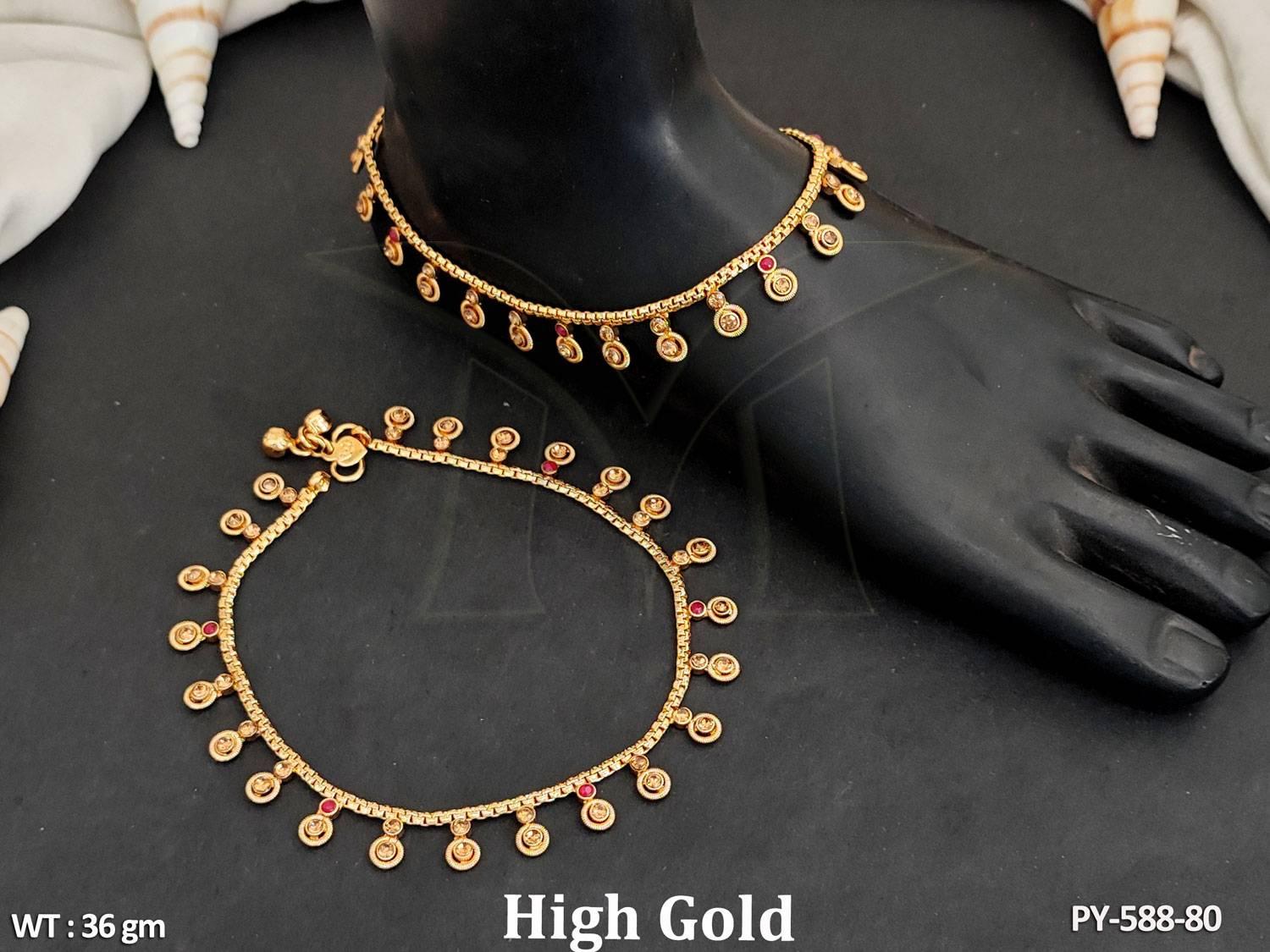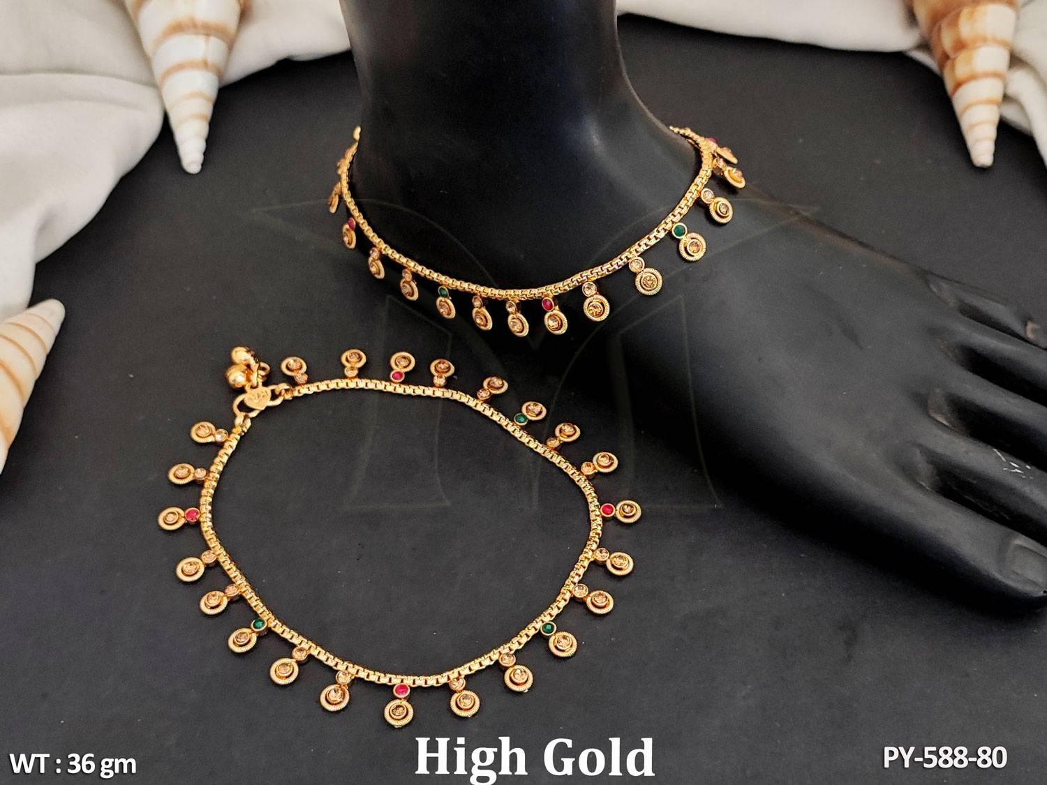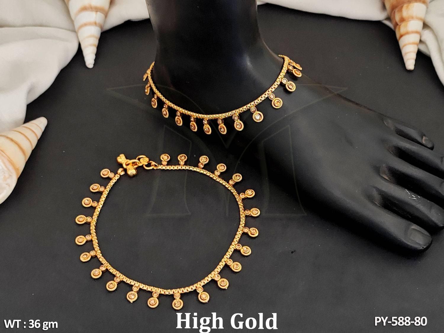 - Antique Jewellery High Gold Polish Attractive Antique Payal Set