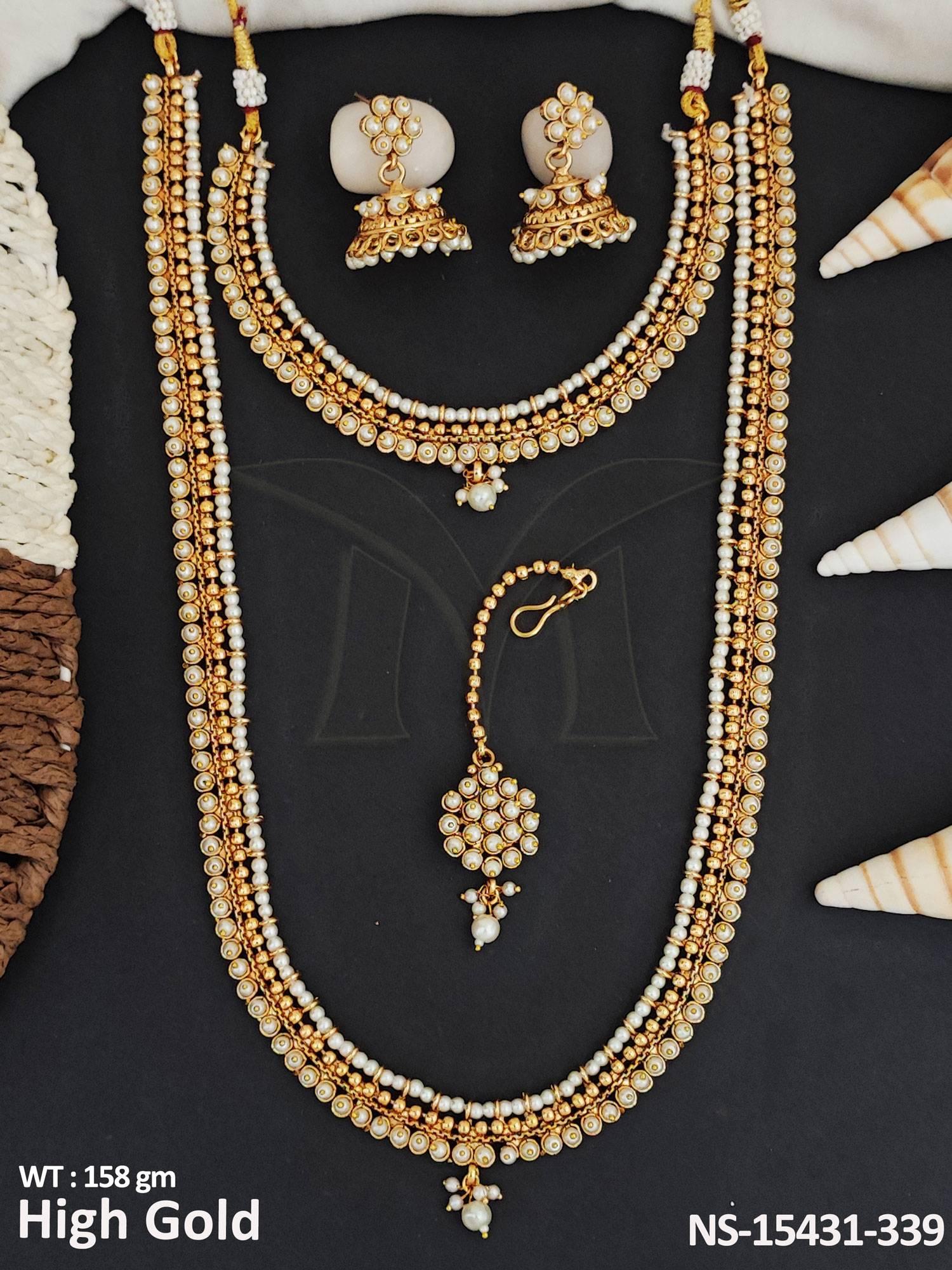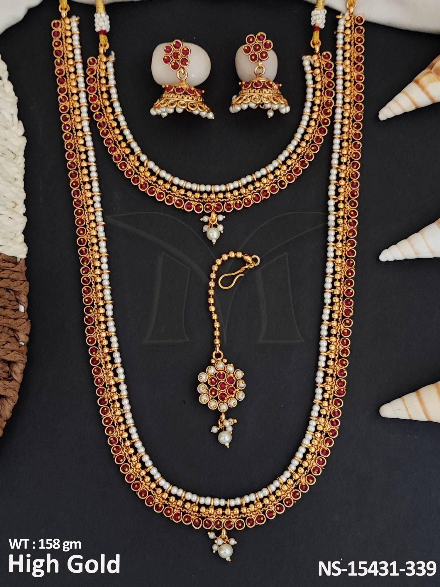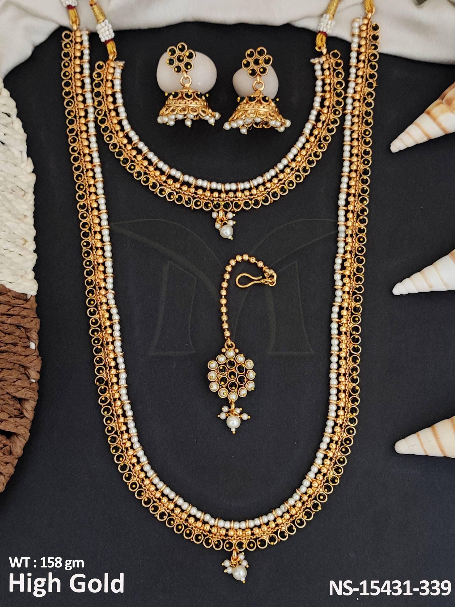 - Antique Jewellery High Gold Polish Party Wear Combo Necklace Set