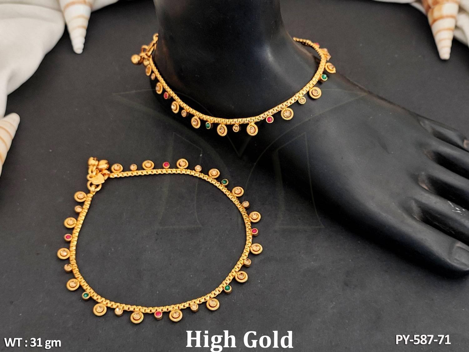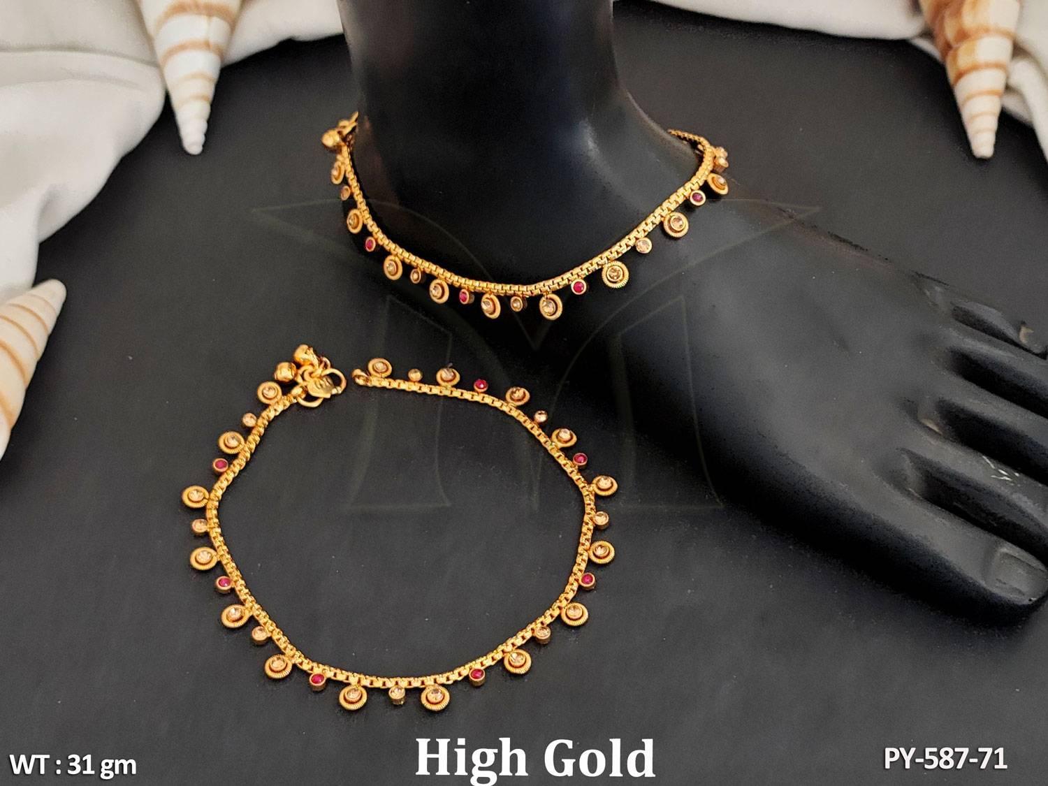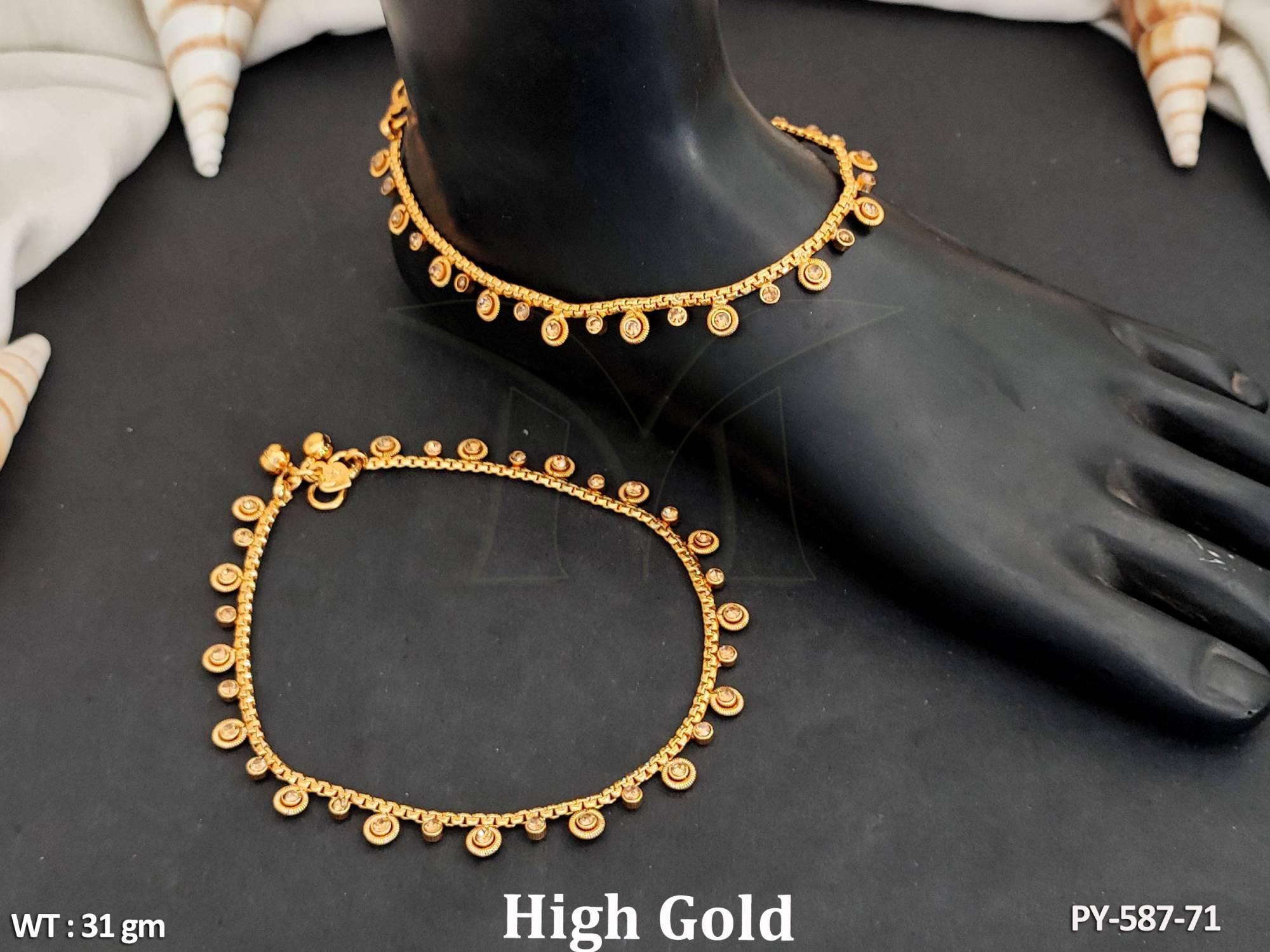 - Antique Jewellery High Gold Polish Unique Design Antique Payal Set