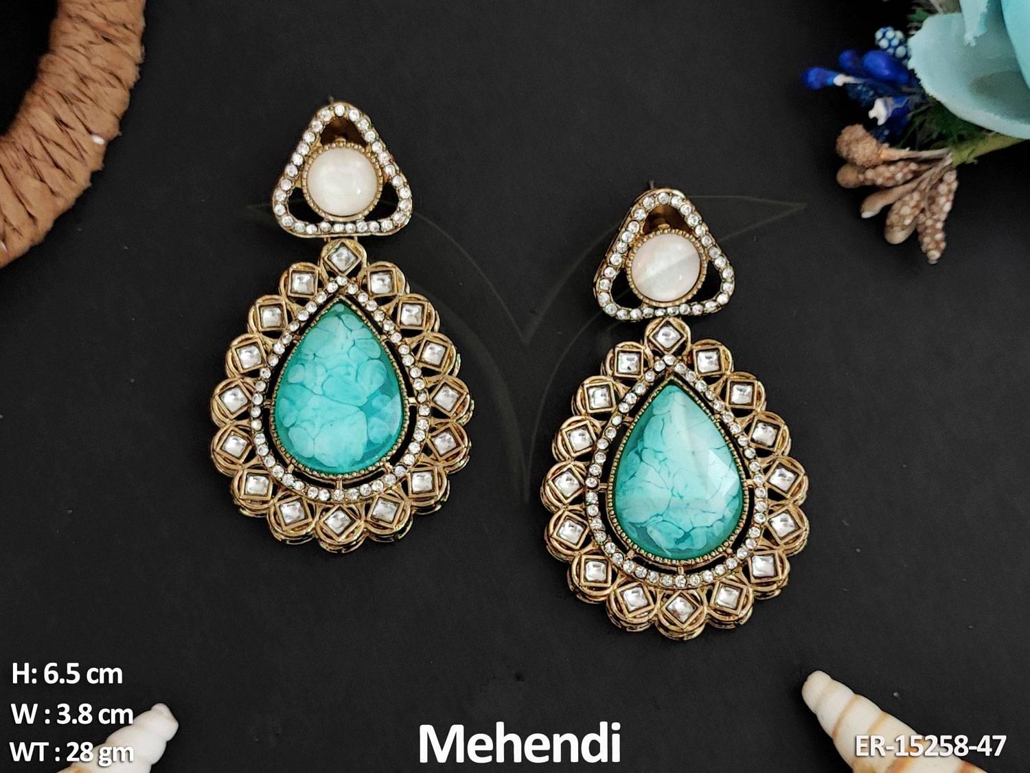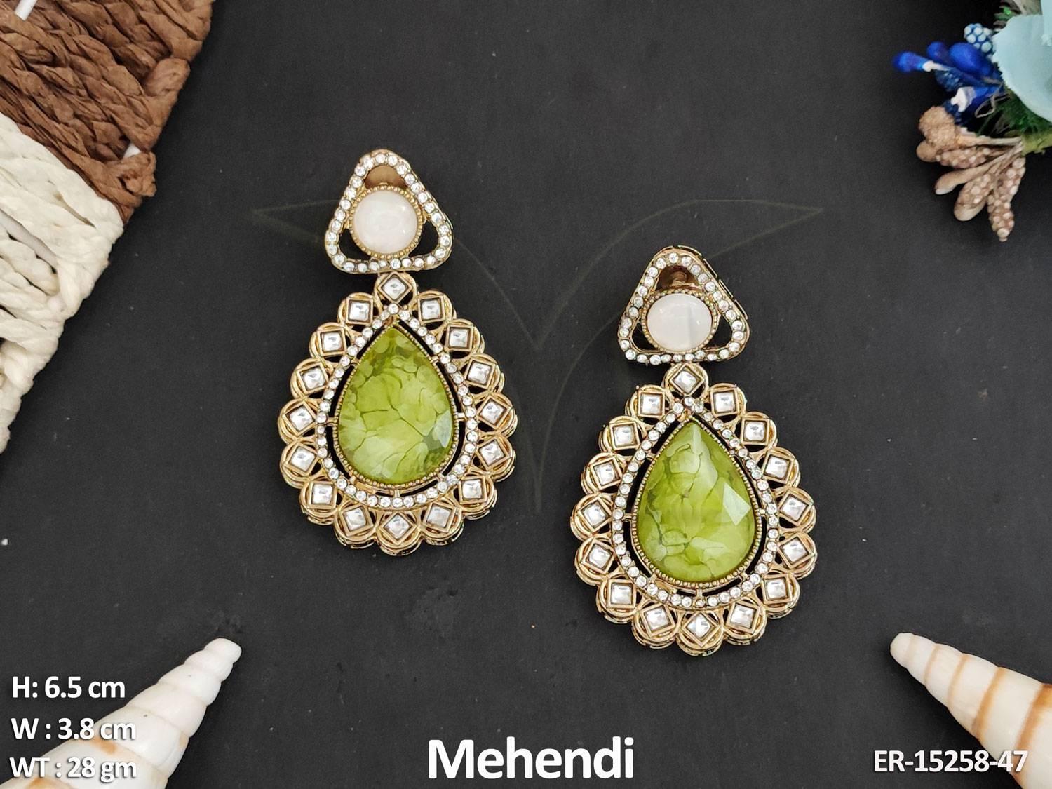 Antique Jewellery Mehendi Polish Full Stone Stylish Earrings