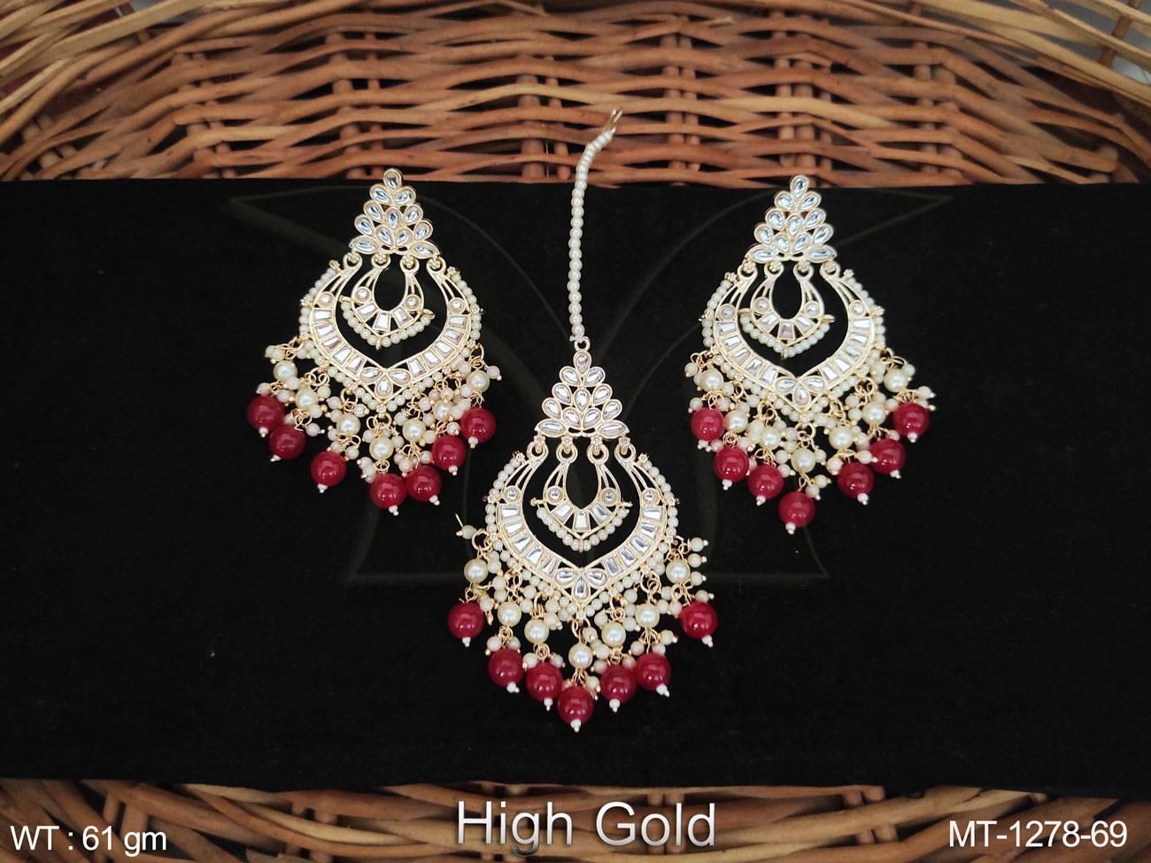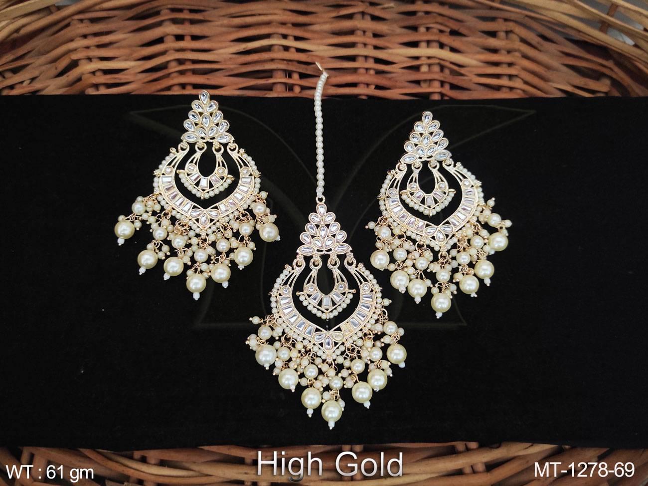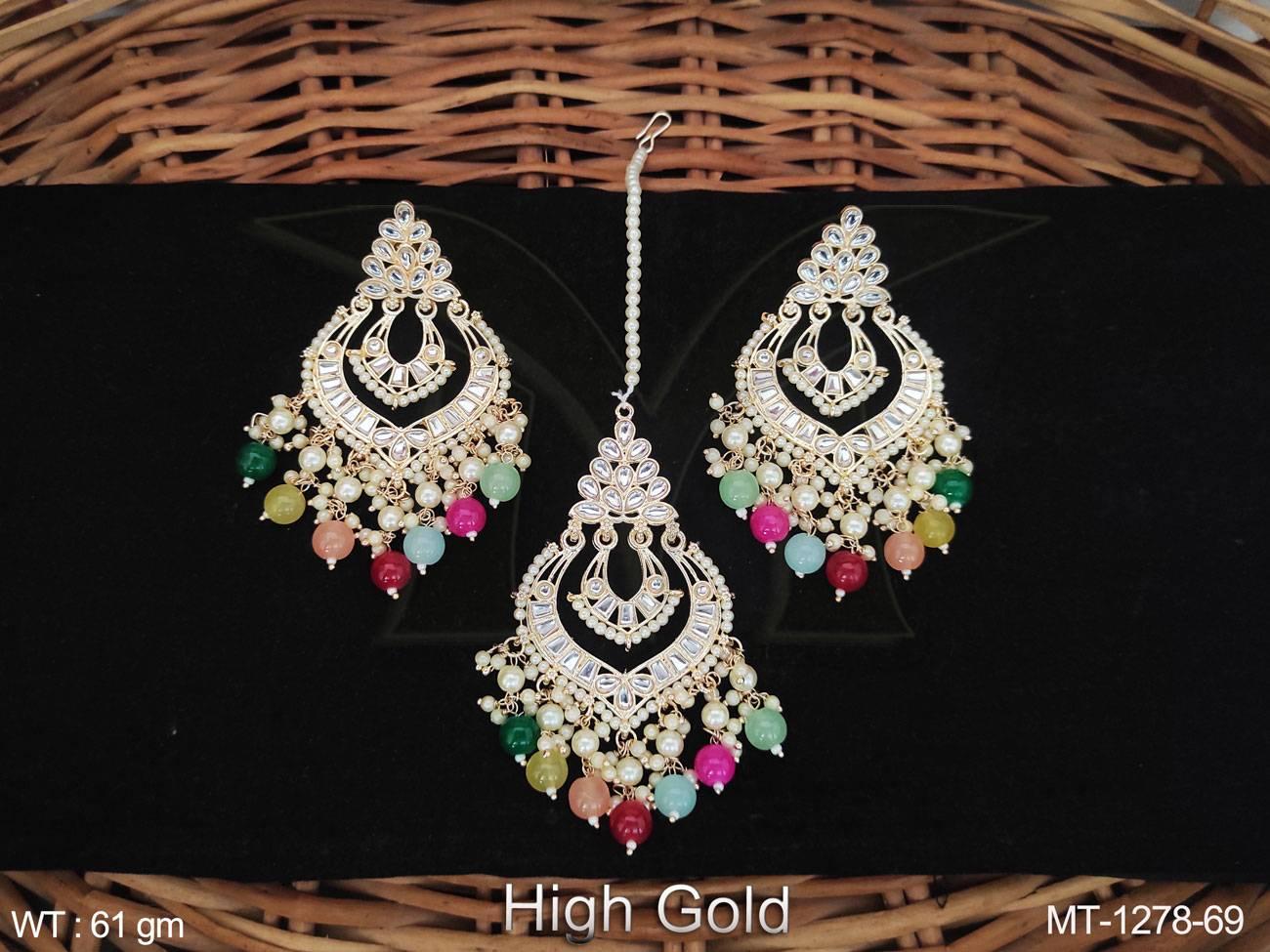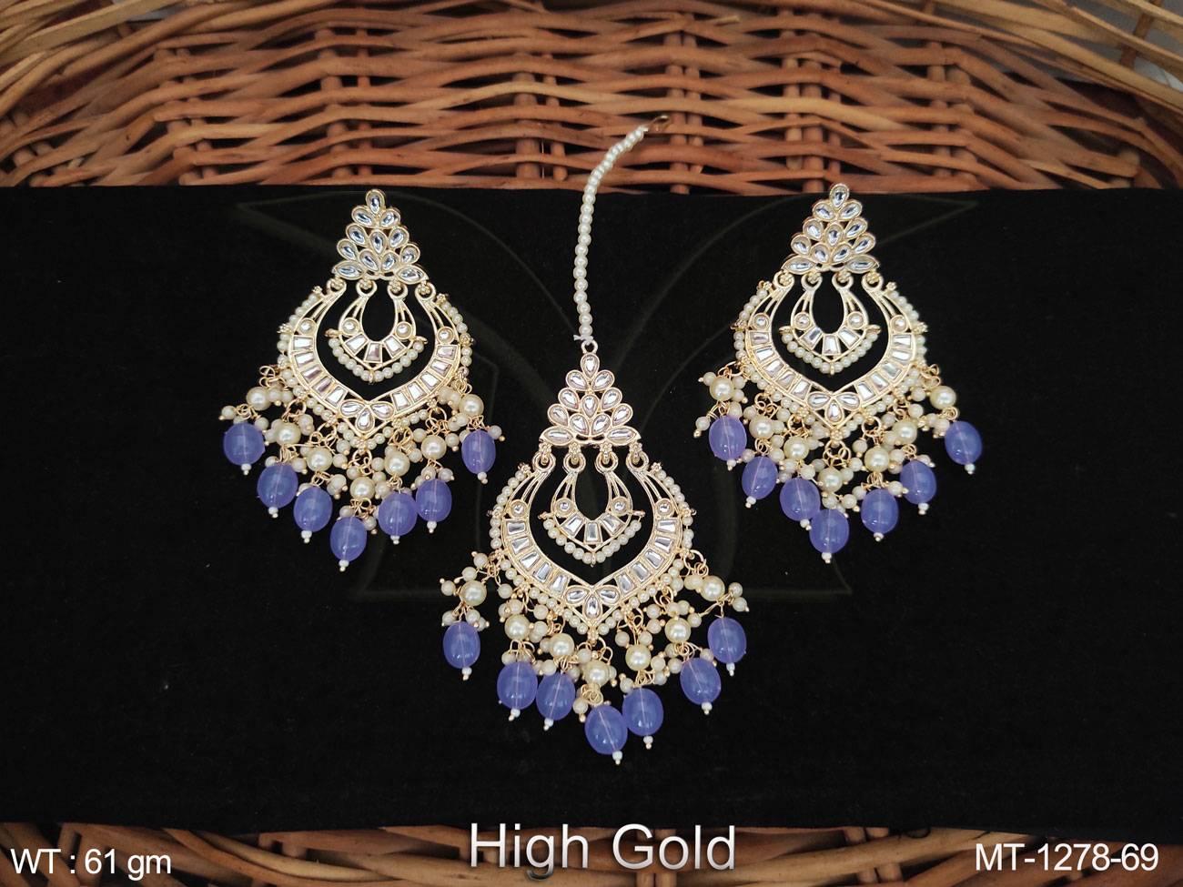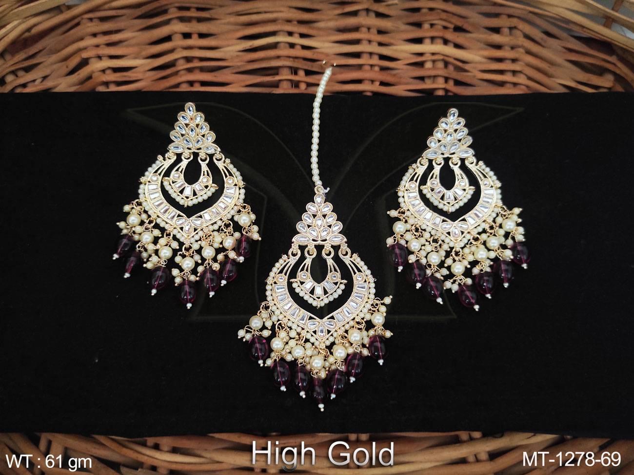 - Antique Jewelry High Gold Polish Fancy Wedding Wear Antique Maang Tikka With Earrings