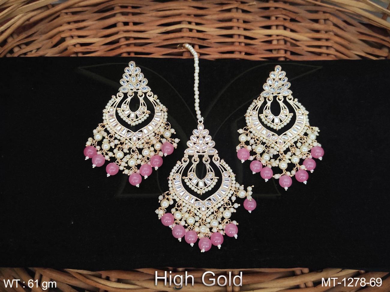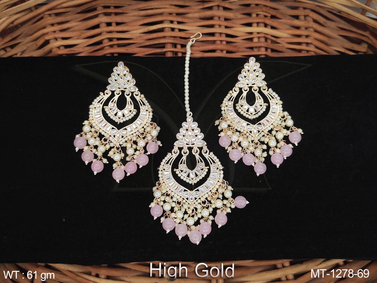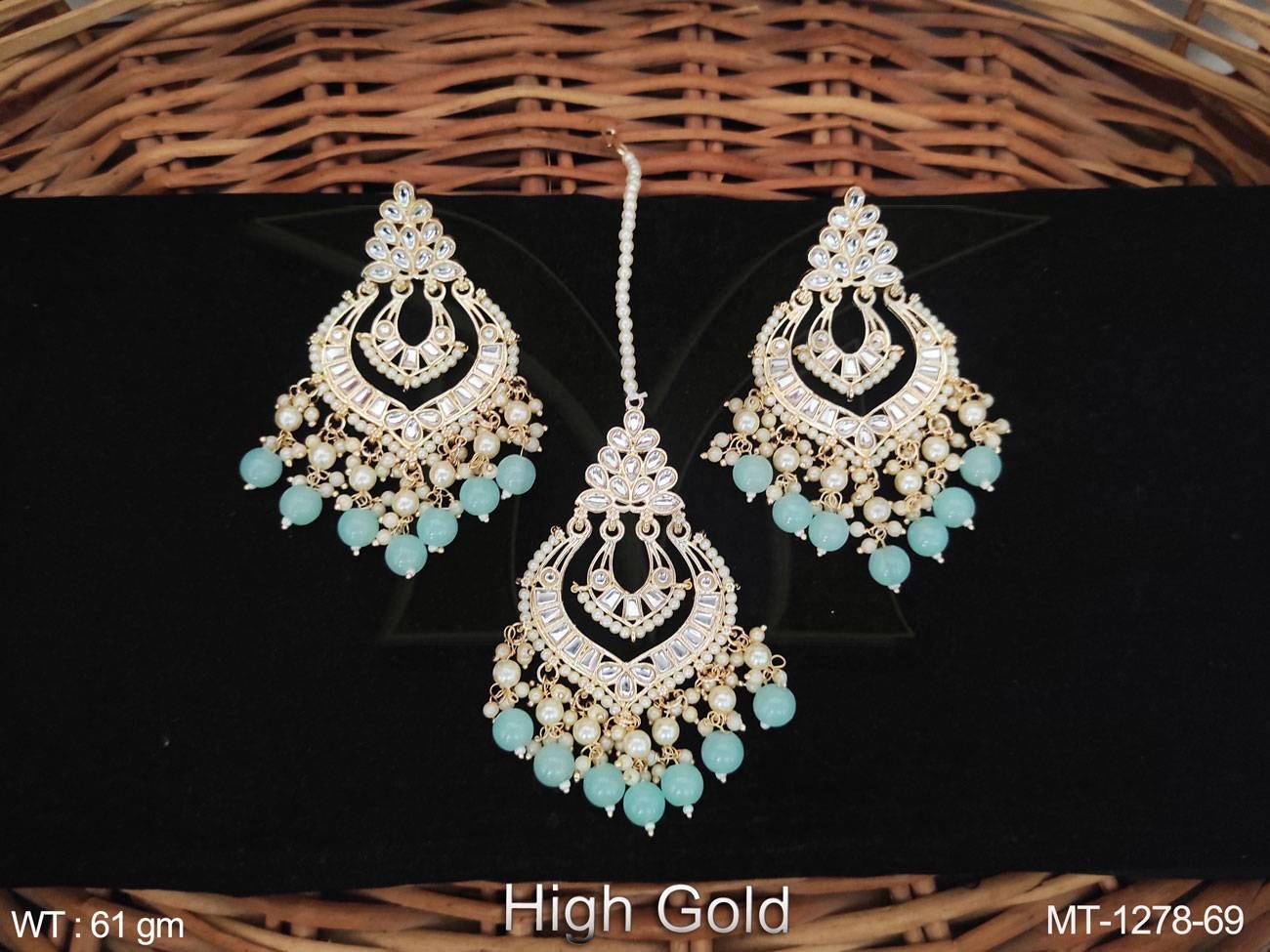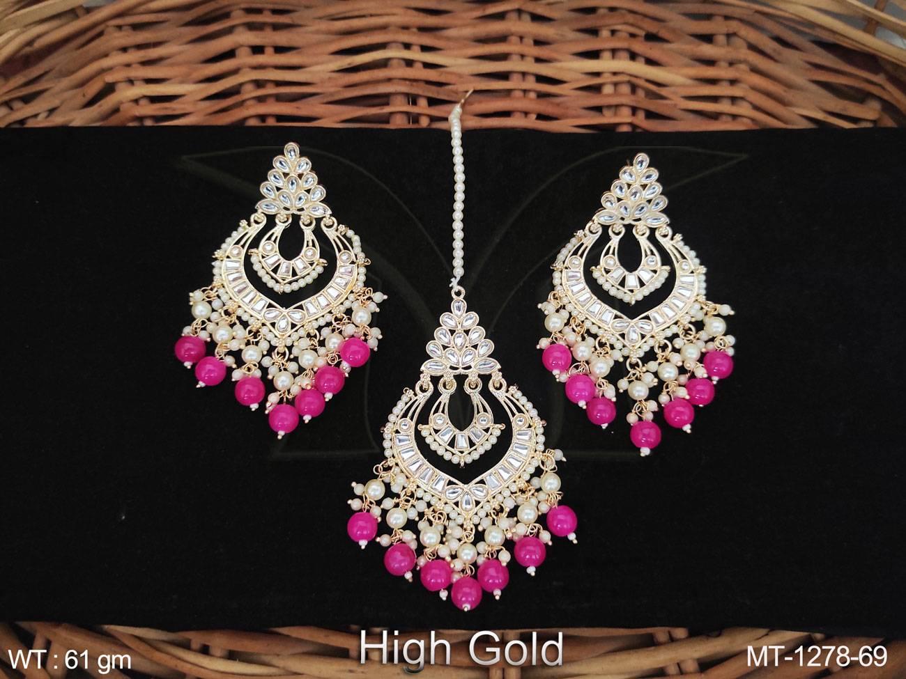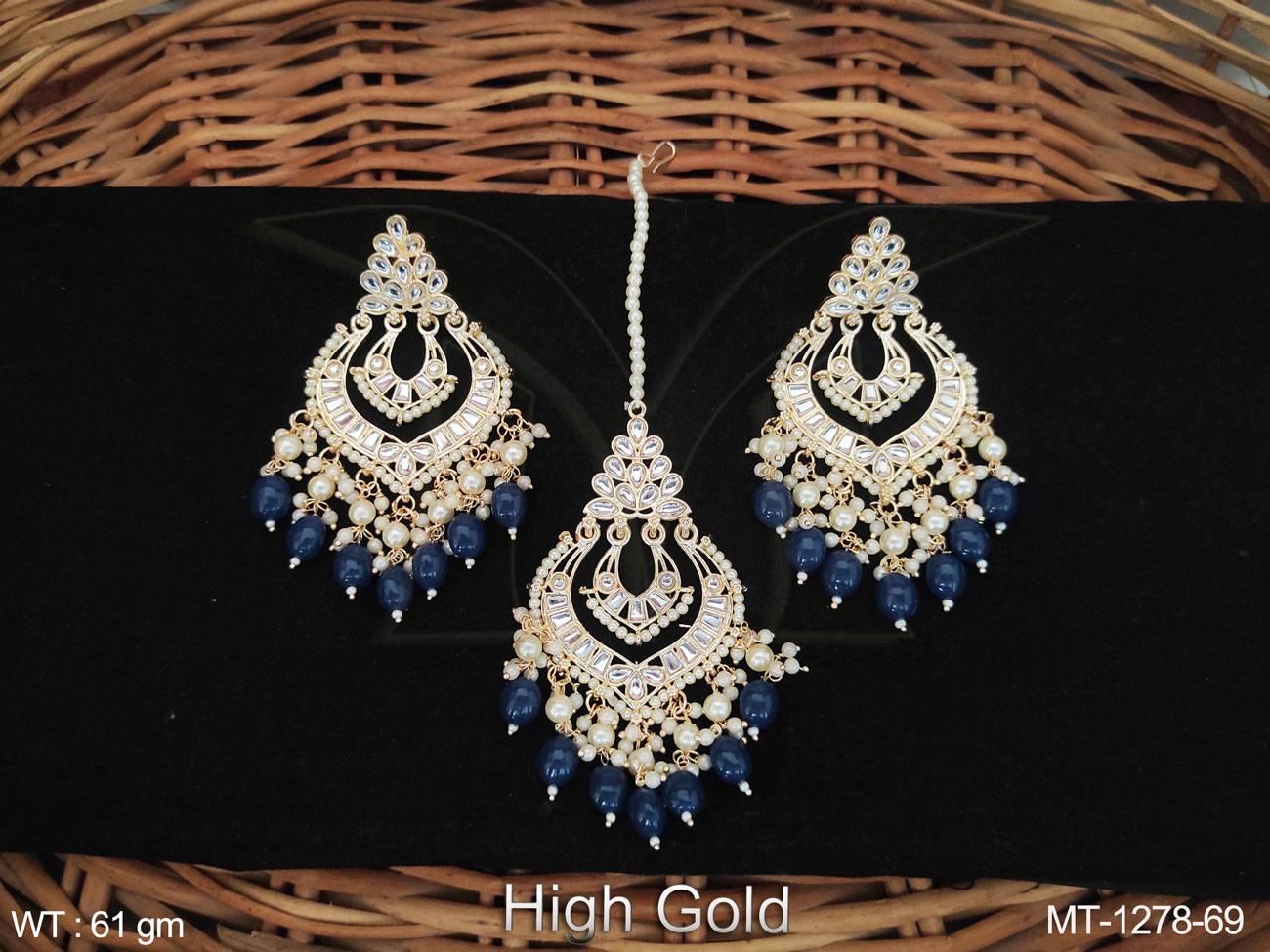 - Antique Jewelry High Gold Polish Fancy Wedding Wear Antique Maang Tikka With Earrings