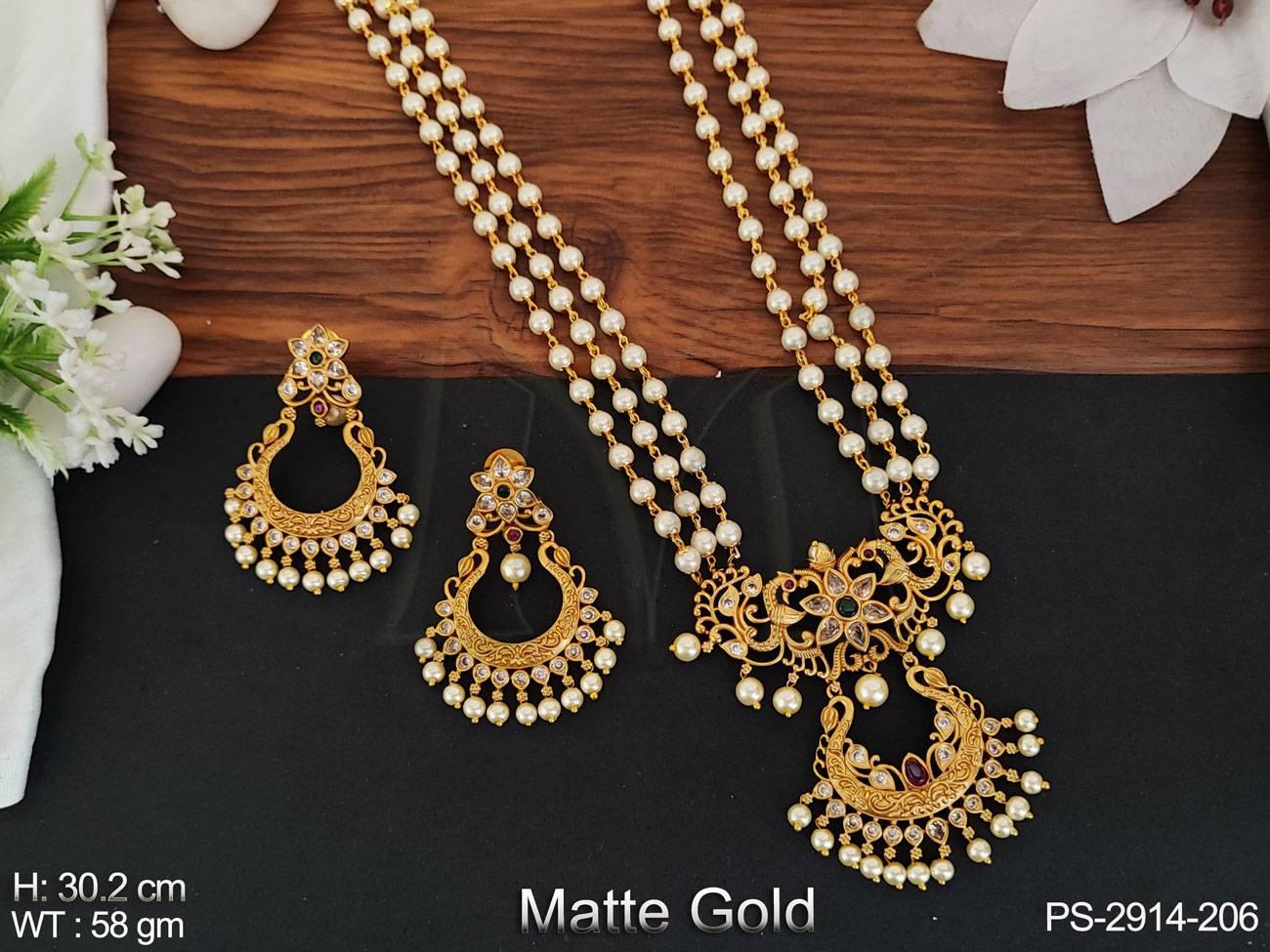 - Antique Jewelry Matte Gold Polish Peacock Design Beautiful Look Antique Long Necklace Set